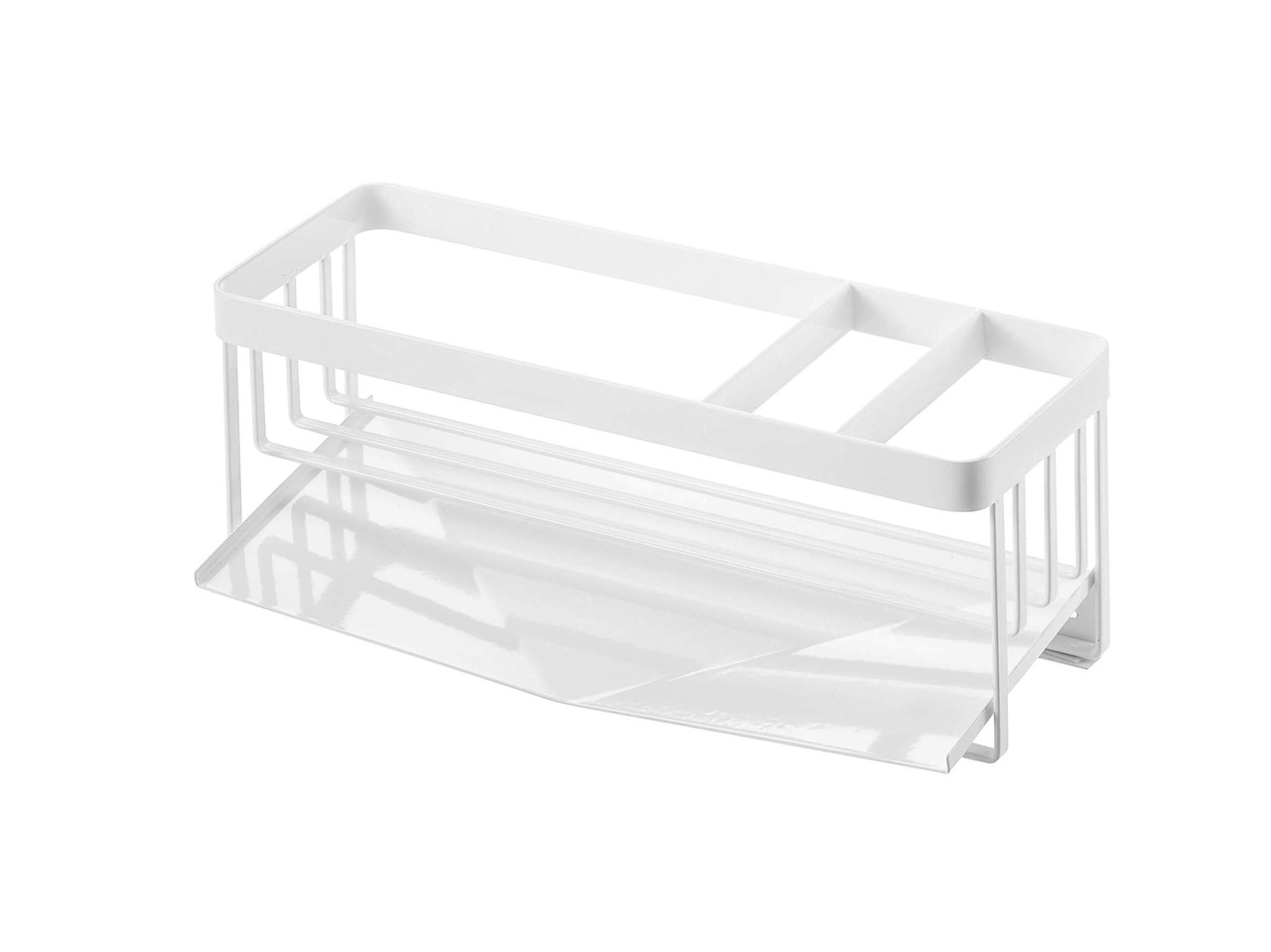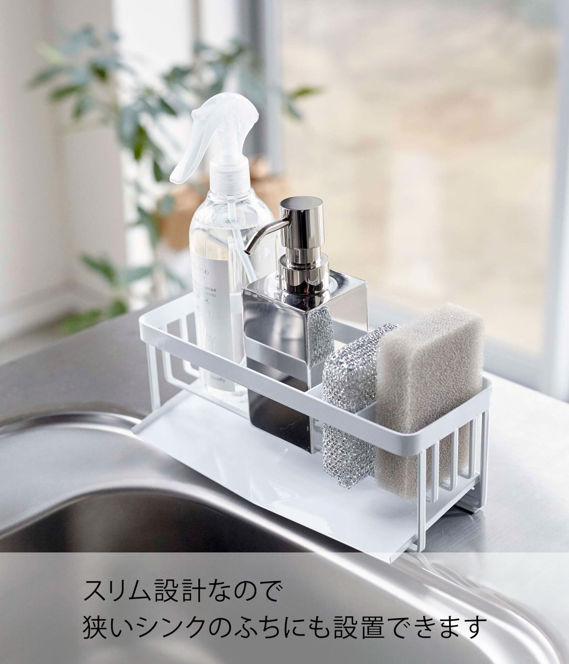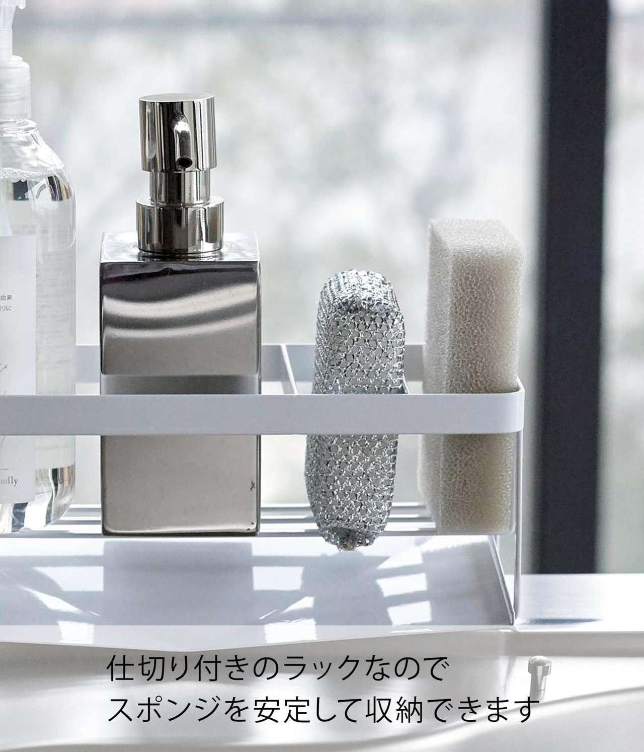 山崎実業(Yamazaki) 水が流れるスポンジ&ボトルホルダー ホワイト 約W25XD10XH9.5cm タワー スポンジラック スポンジ置き 水切り機能 5016