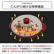 電子レンジのマイクロ派が直接食材の水分に反応するのを防ぎ、本体底部のプレートでマイクロ派を熱に変換して、効率的に熱と蒸気を循環させて加熱調理ができる特殊な構造により、こんがり焼くことができます。