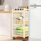 家庭収納用 スリムワゴン:バスケットラックとして、台所だけでなく、バスルーム、寝室、ドアと壁の隙間収納、洗濯機の横、冷蔵庫横、洗面所 、洗面台の横、リビングルームなど、家のあらゆる場所で活躍します。おもちゃやお菓子の整理だけでなく、個人のヘルスケア製品、小物、 食品、 調味料、装飾品、野菜、 果物、 食品、入浴剤、書籍など、幅広いアイテムを簡単に収納できます。暮らしのあらゆるシーンにおいて、整理整頓された空間を提供し、生活をより快適にします。