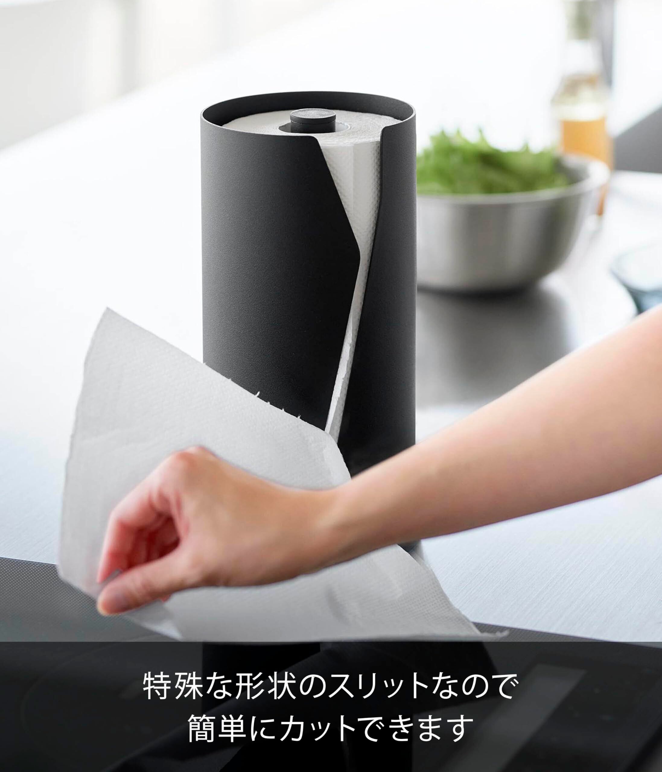 縦置きで省スペース!片手でカットできるキッチンペーパーホルダーです。安定感のある構造で片手でもスムーズに引き出せ、特殊な形状のスリットはペーパーを簡単にカットすることができます。