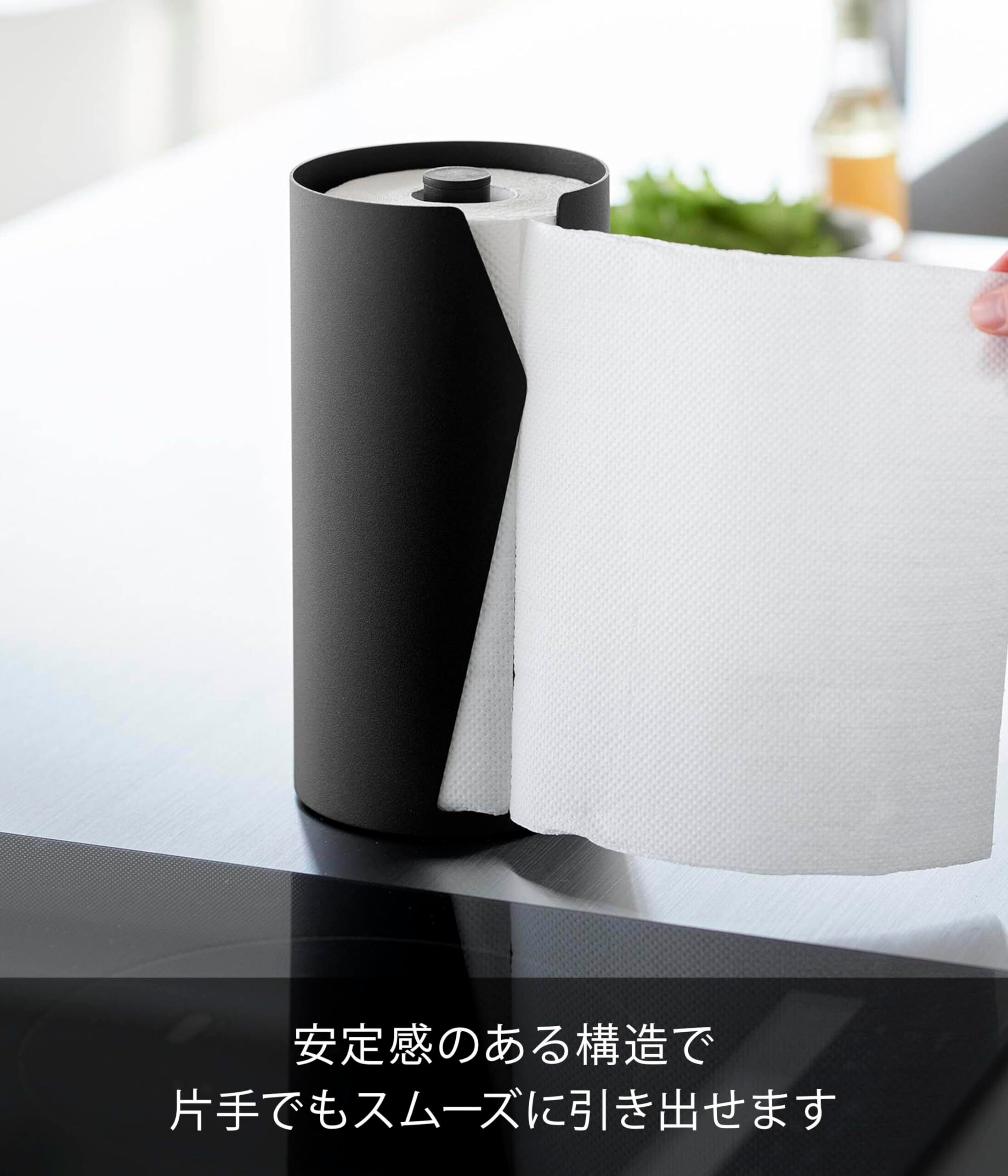 山崎実業(Yamazaki) 片手でカット 隠せる キッチンペーパーホルダー 縦タイプ ブラック W12×D12×H24.7cm タワー tower 立てて使えて省スペース 10040