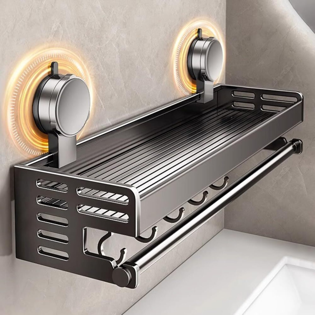 GOENDR 調味料ラック 吸盤 スパイスラック 壁掛け キッチン収納ラック 調味料入れ 調味料置き 浮かせる収納 ふきん掛け キッチンペーパーホルダー付き 布巾ハンガー 浴室用ラック キッチン/風呂場/洗面所 防水防錆 5個移動式フック 強力吸盤 穴あけ不要 アルミ製 グレイ 40cm [並行輸入品]