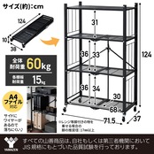 山善(YAMAZEN) ラック すぐに使える (本体完成品/キャスターを付けるだけ) 全体耐荷重60㎏ 4段 折りたたみ 幅71.5×奥行37×高さ124㎝ ホワイト LIS-4(WH)
