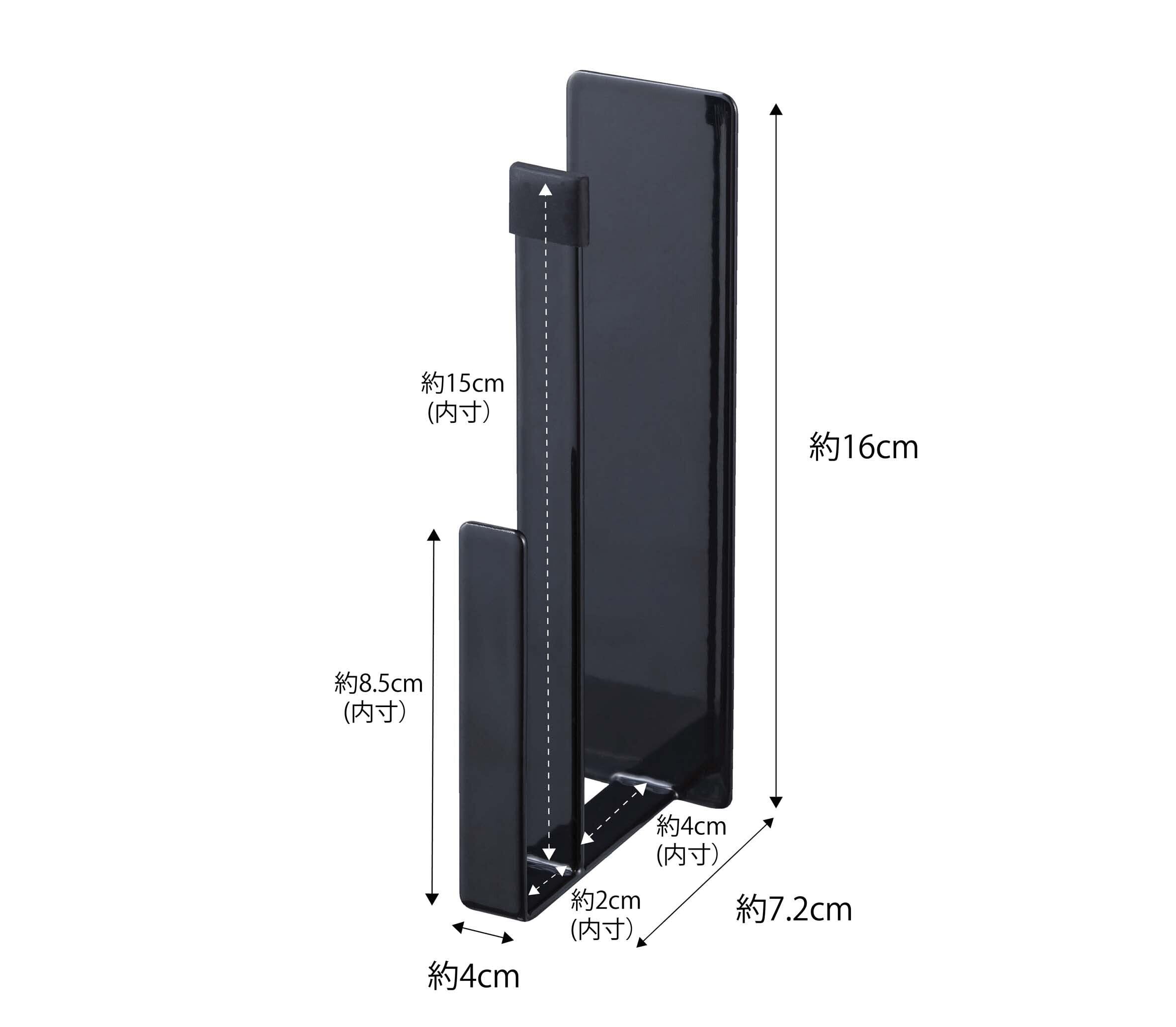 山崎実業(Yamazaki) マグネットキッチントレーホルダー 2個組 ブラック 約W4XD7.2XH16cm タワー キッチントレー収納 円形トレー収納可 幅調節可能 5051