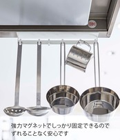 レンジフードのスチールカバー面に(整流板)マグネットで簡単取り付けのキッチンツールフック。