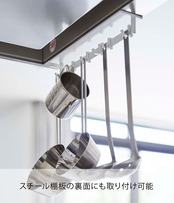スチール棚板の裏面にも取り付け可能。