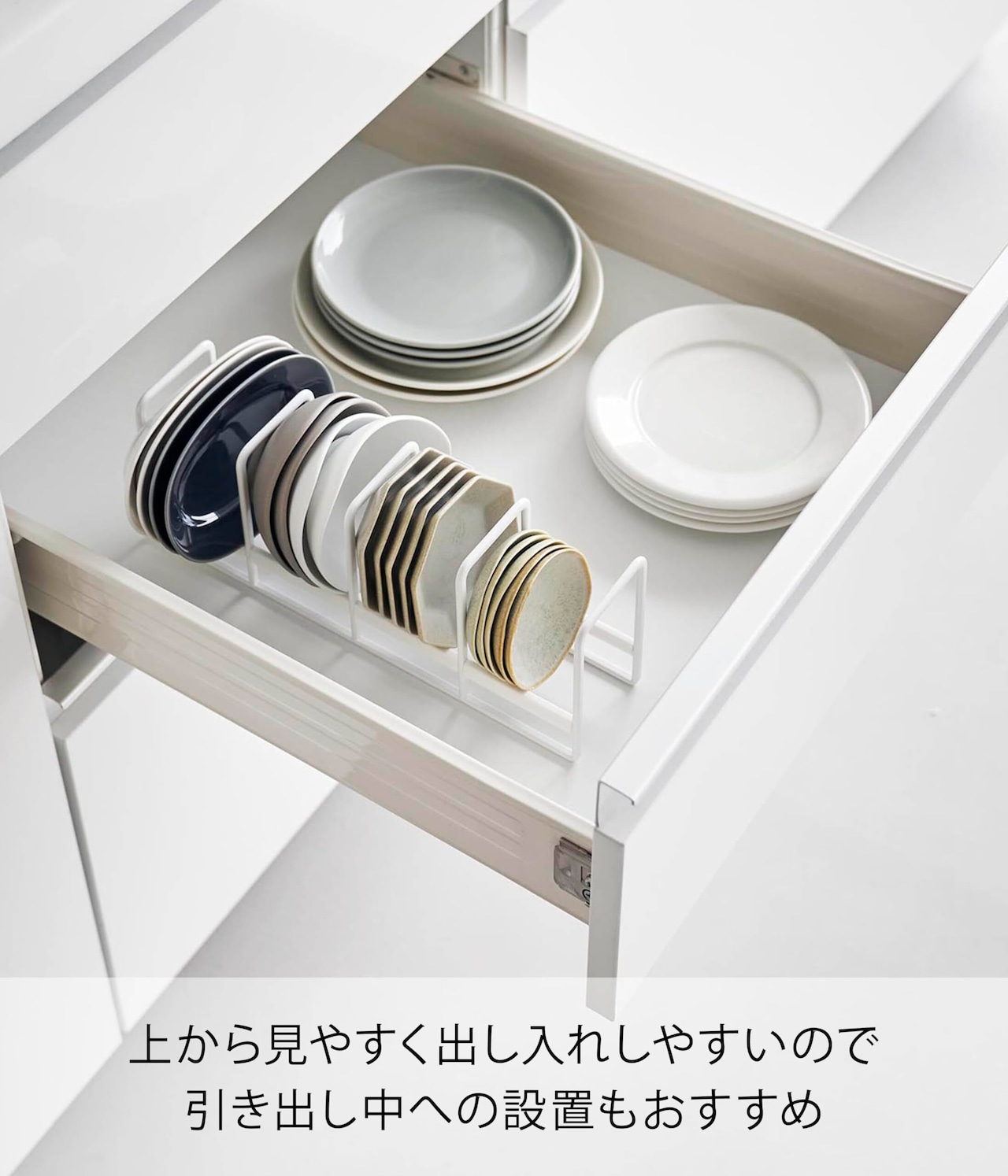 上から見やすく、出し入れしやすいので引き出し中への設置もおすすめです。