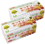 ハウスホールドジャパン キッチン ポリ袋 半透明 約35×25cm マチ付き 箱入り エンボス加工で滑りにくく、取り出しやすい 300枚入×2個セット KB18