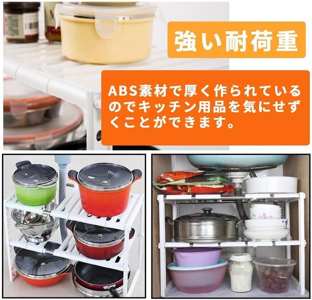 chuqisheji シンク下 収納ラック 伸縮式 キッチンシンク下収納 2段 スライド 台所収納 食器棚 高さ調節可能 簡単組立 流し台 フライパン 鍋 棚 机の下 洗面所 流し台下 洗面台下 ホワイト