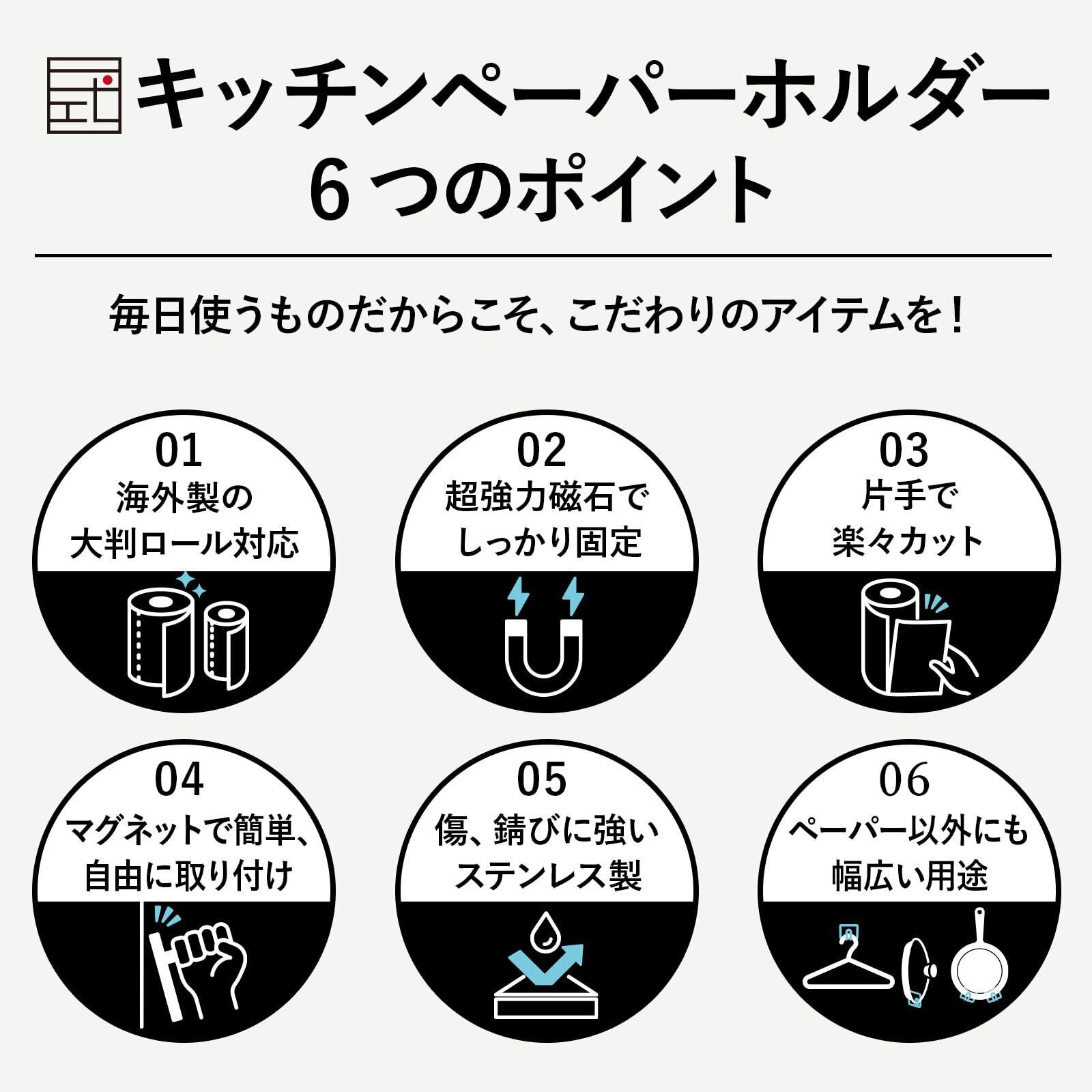 issiki キッチンペーパーホルダー マグネット 片手で切れる ステンレス 海外製 大判 ロール 縦 横 対応 強力 磁石 フック ホワイト ツール 冷蔵庫