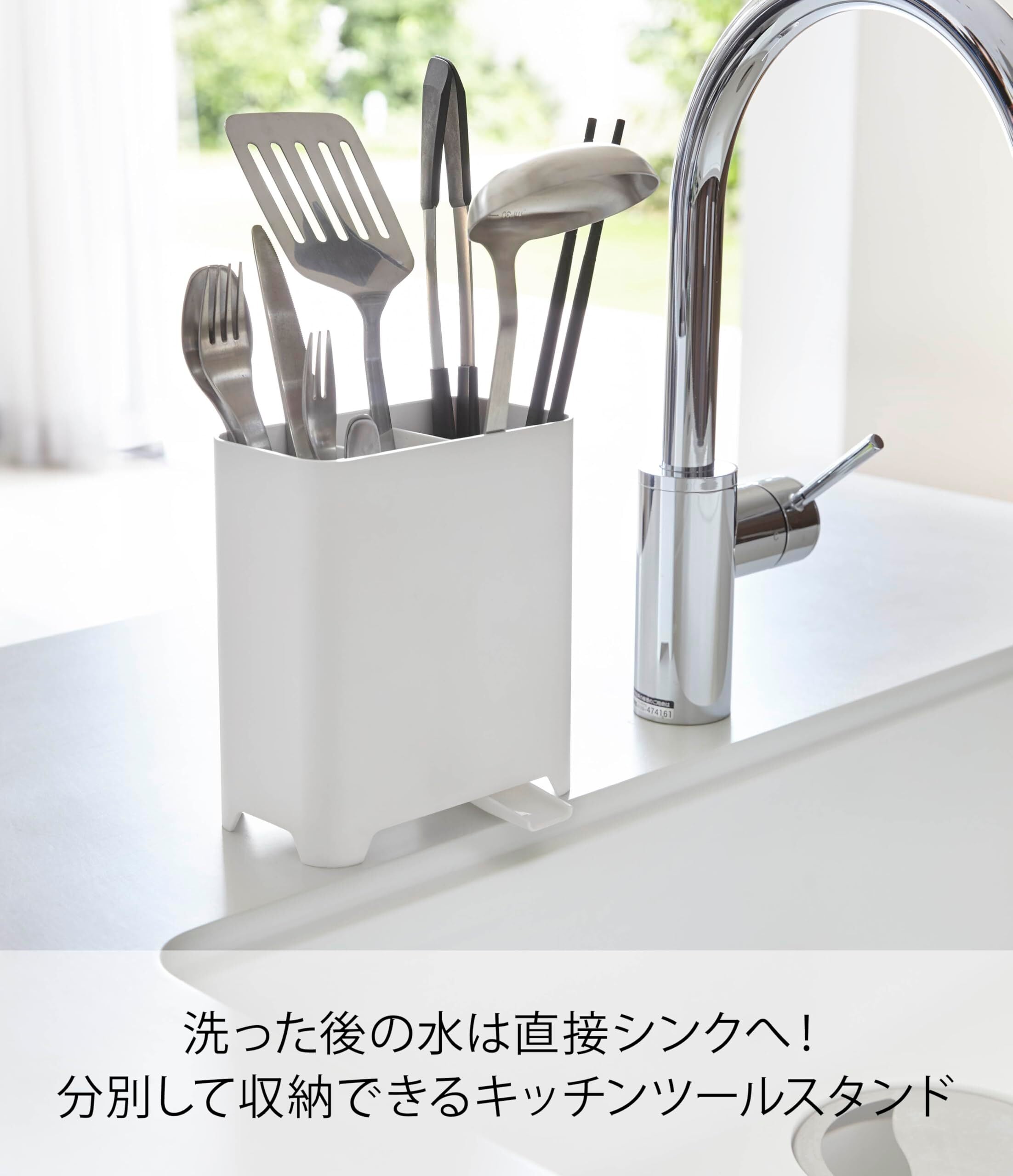 調理道具やカトラリーを洗ってそのまま収納できるスタンド。
