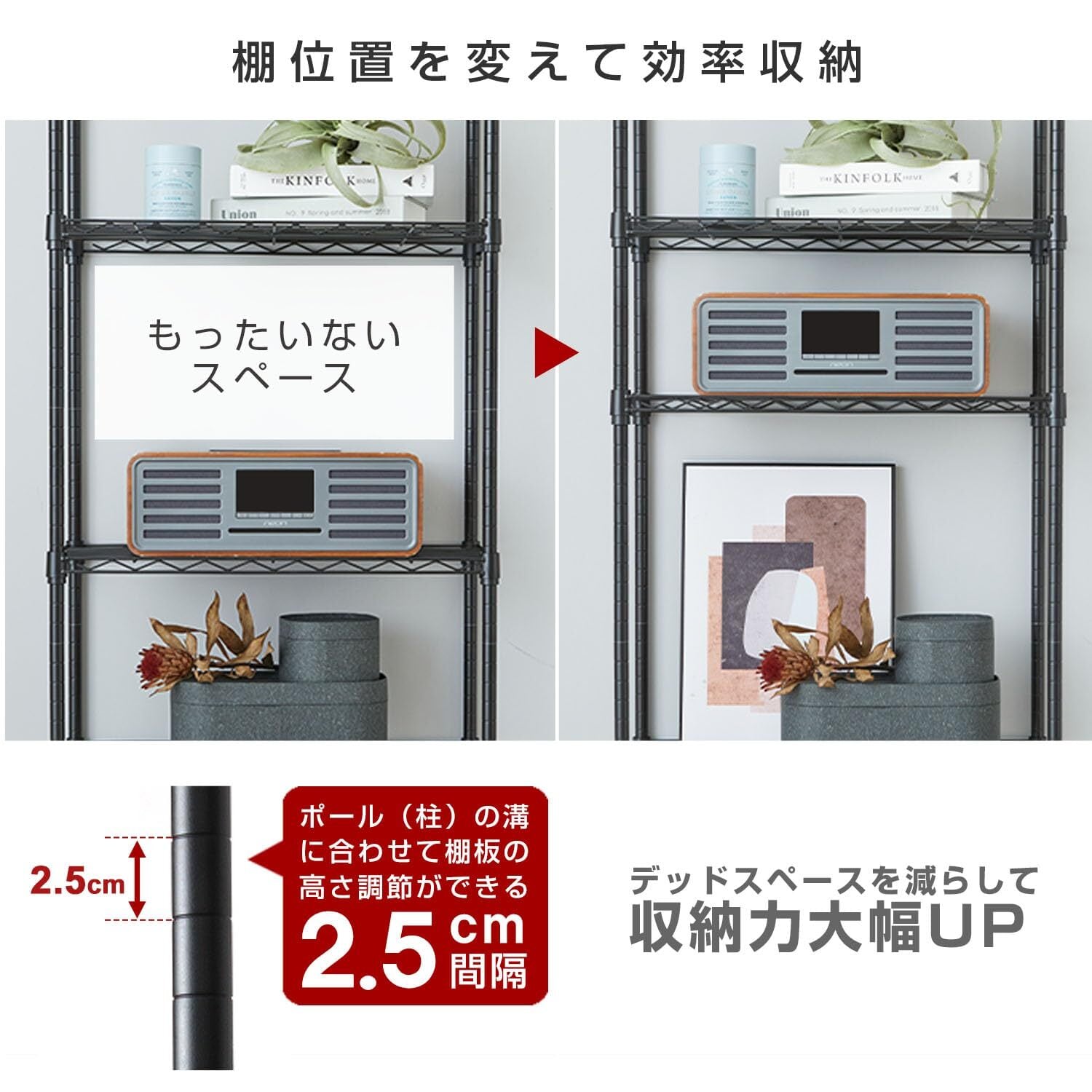 2.5cm単位で自由に調整ができる=収納物に合わせて無駄なく収納