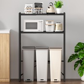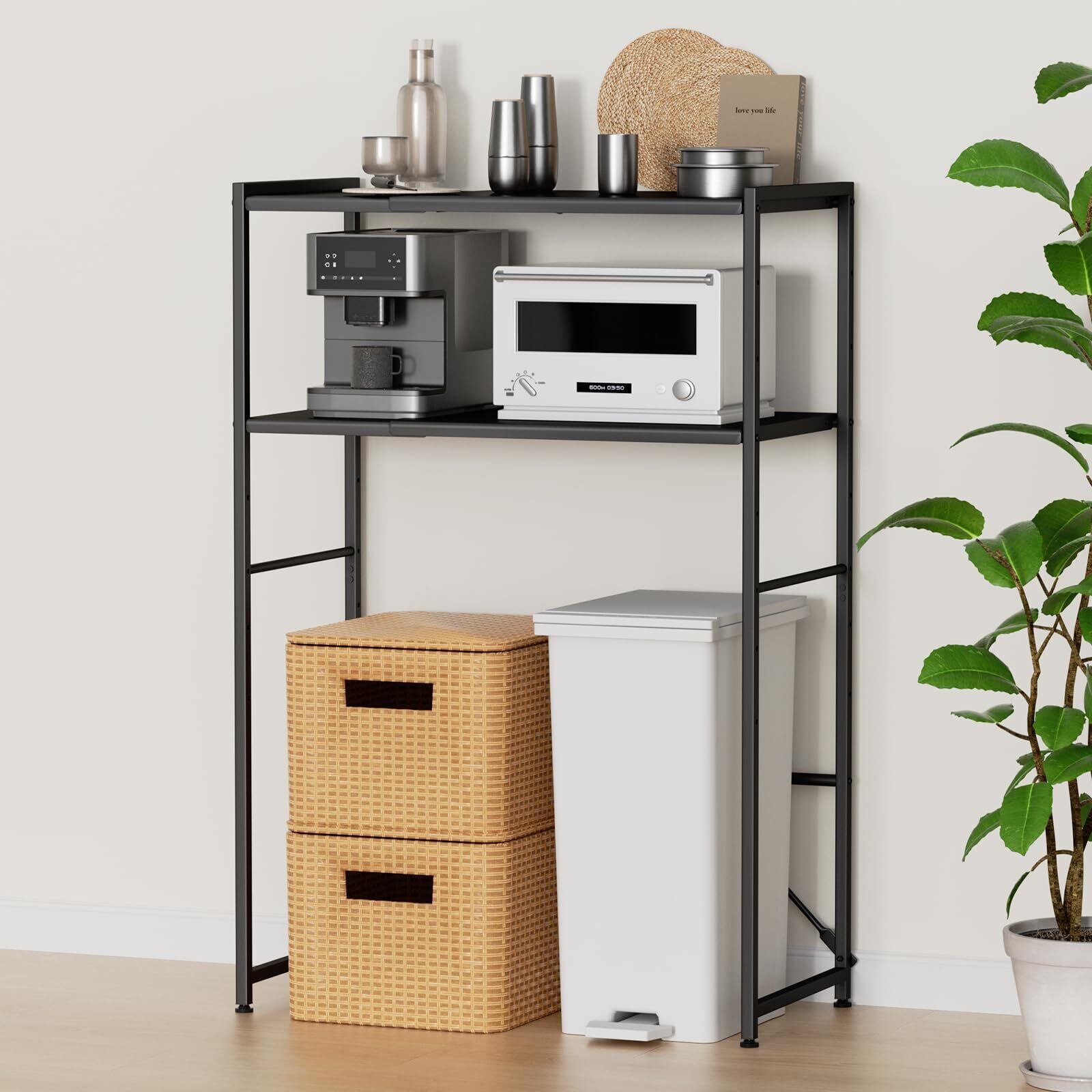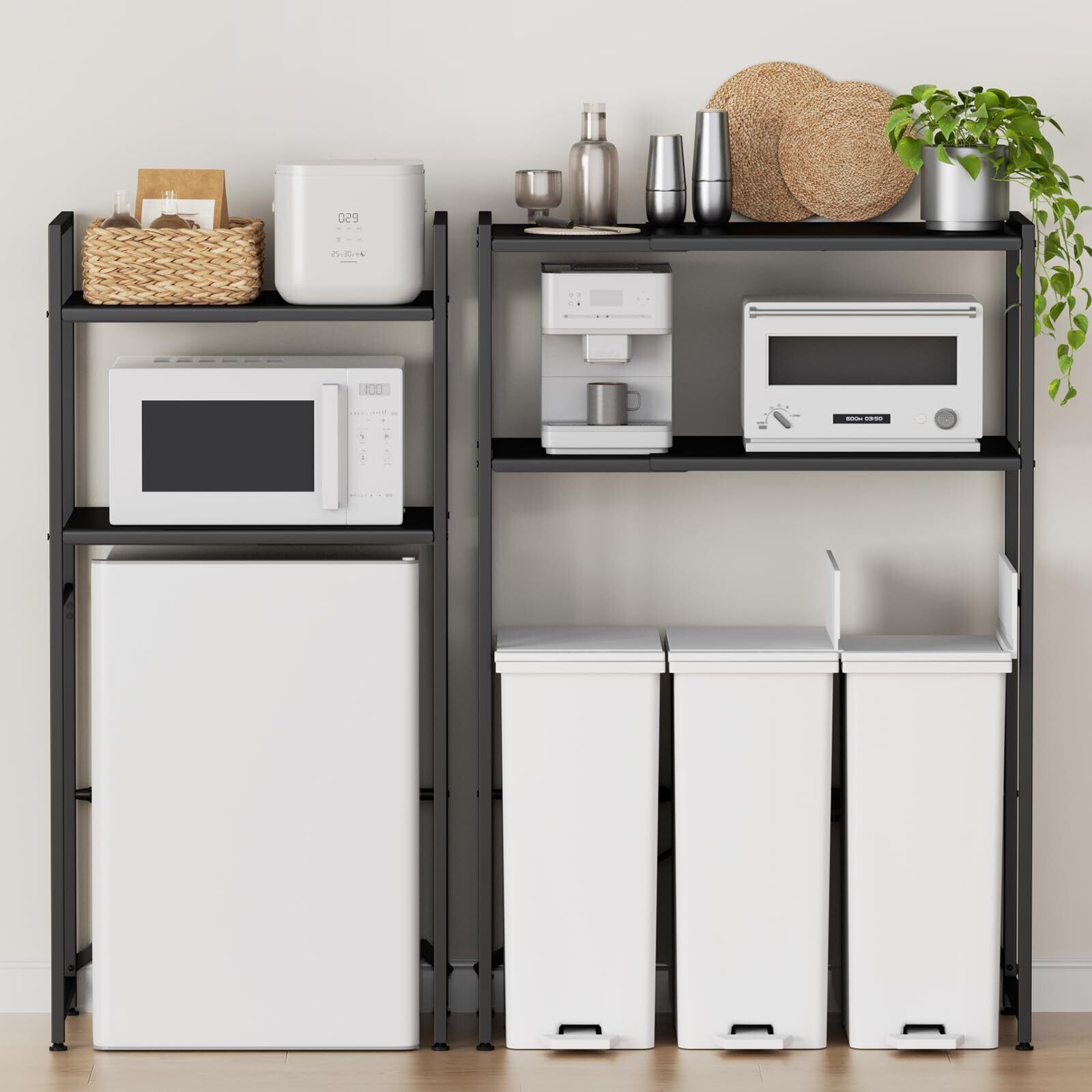 【幅伸縮可・上下調整可】ゴミ箱上ラック TKUIN 電子レンジラック レンジ台 幅60~80cm 高さ8段階調整 トースター置き台 多機能 キッチンラック キッチンボード 冷蔵庫上収納棚 レンジボード スチール スリム おしゃれ 北欧 (Black)