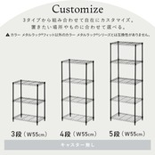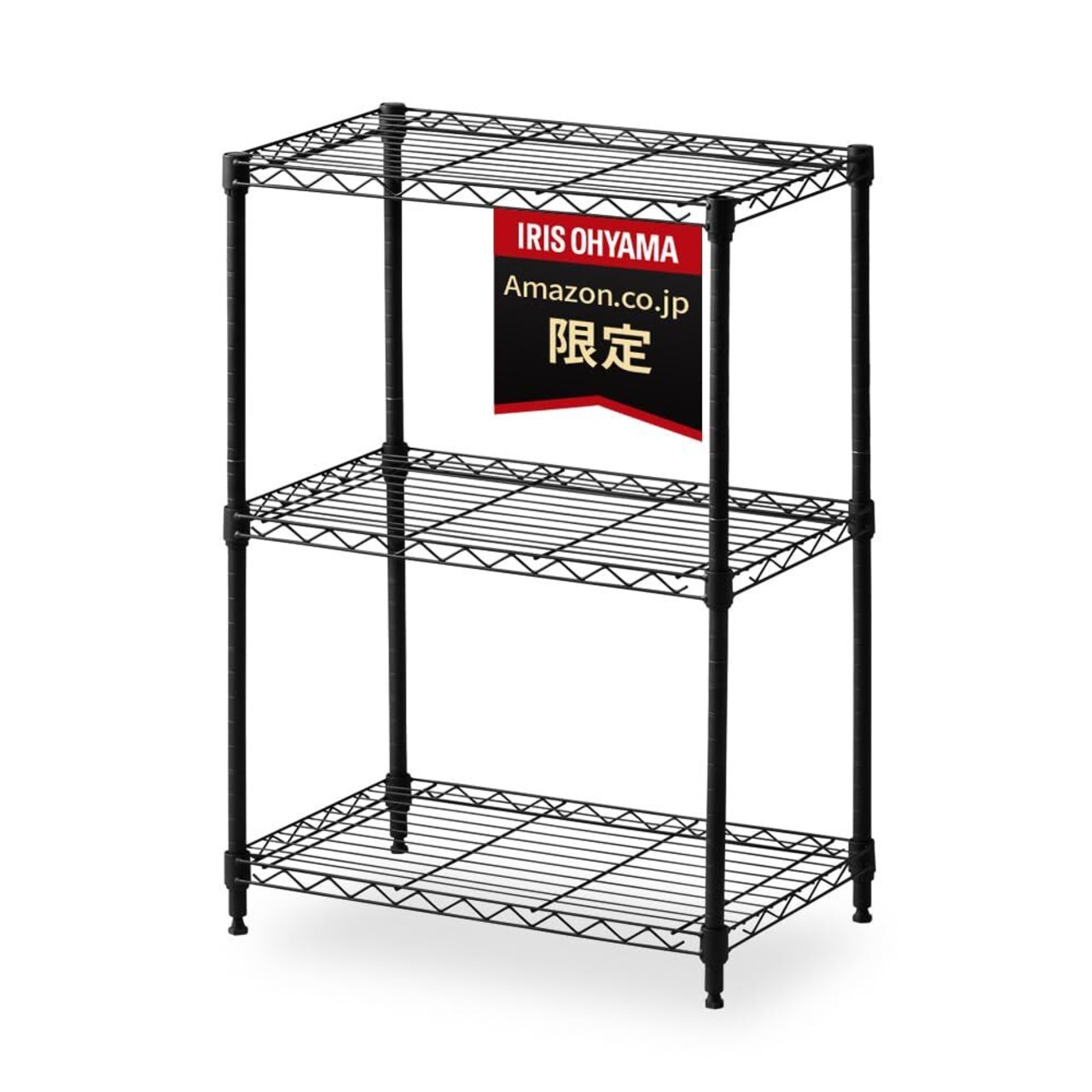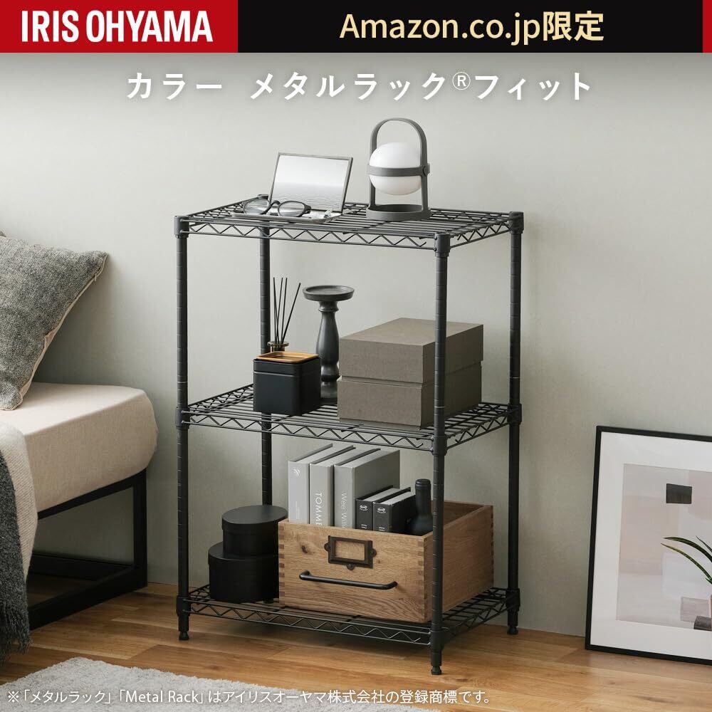 アイリスオーヤマ お部屋に馴染むマットカラーのラック メタルラック カラーメタルラック本体 ワゴン 55cm幅 3段 ブラック 黒 ポール径19mm 耐荷重100㎏ 幅55×奥行35XCMF