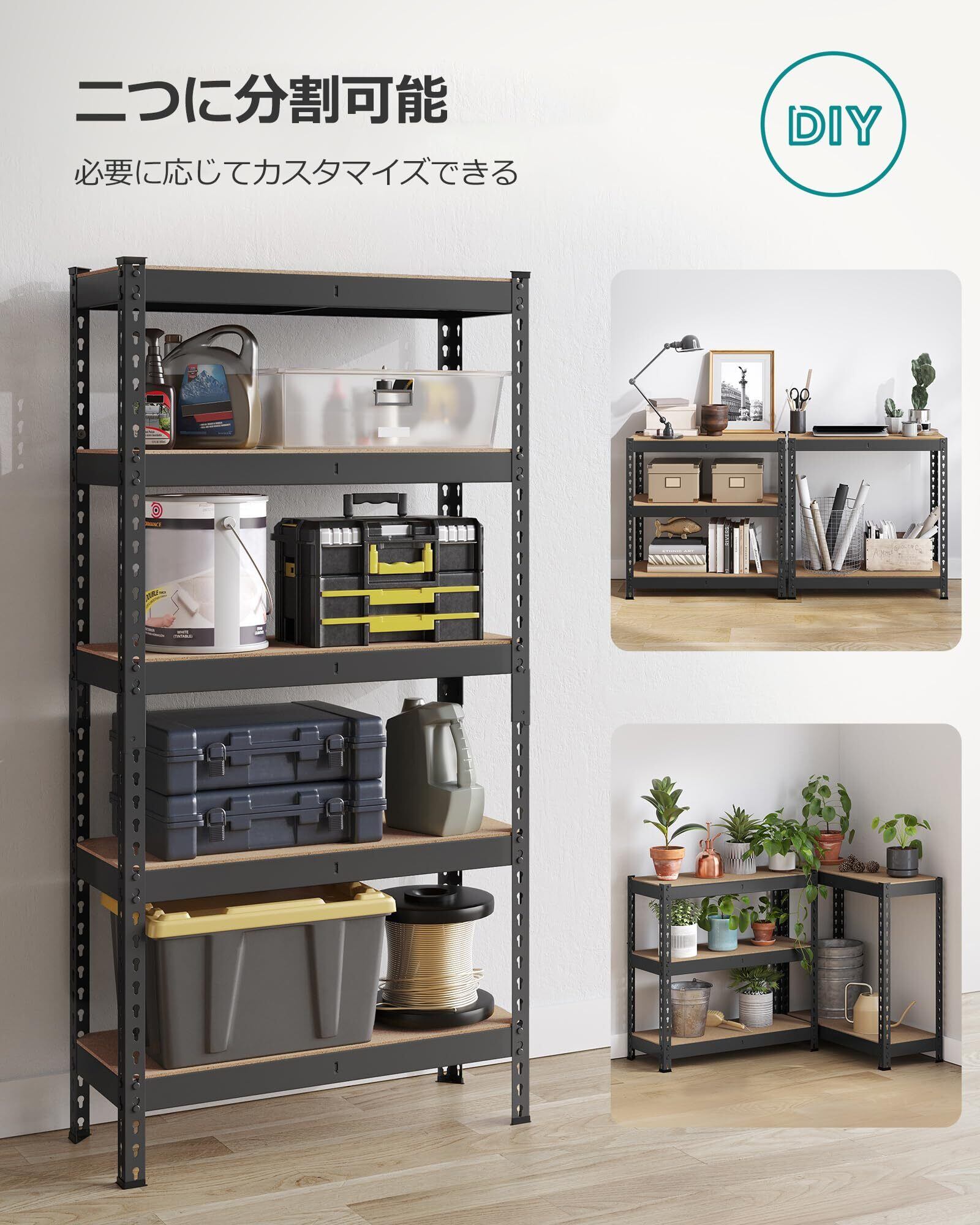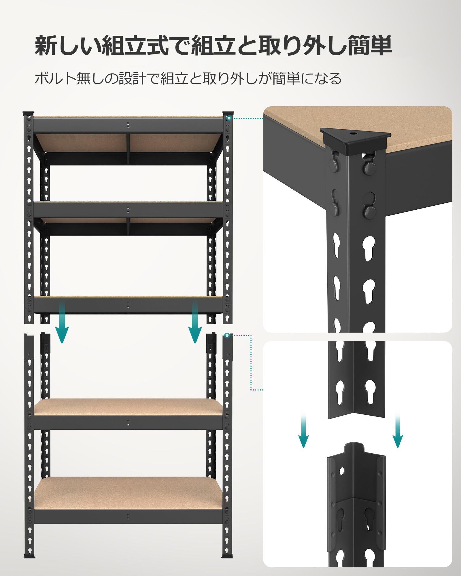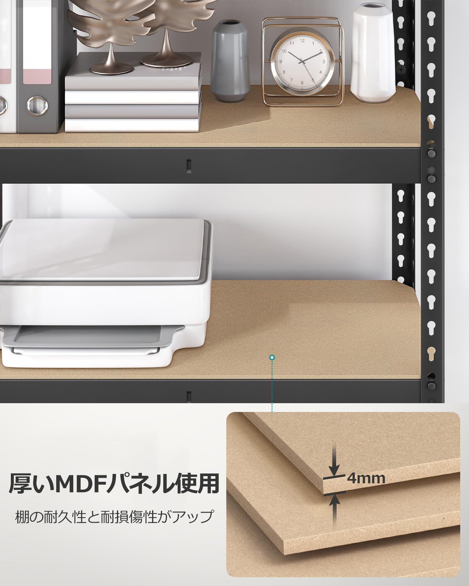 【抜群の耐久性と収納力】棚板1枚当たり約175kgの耐久性があり重い物を乗せても耐えられます。総耐荷重は875KGです。