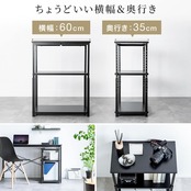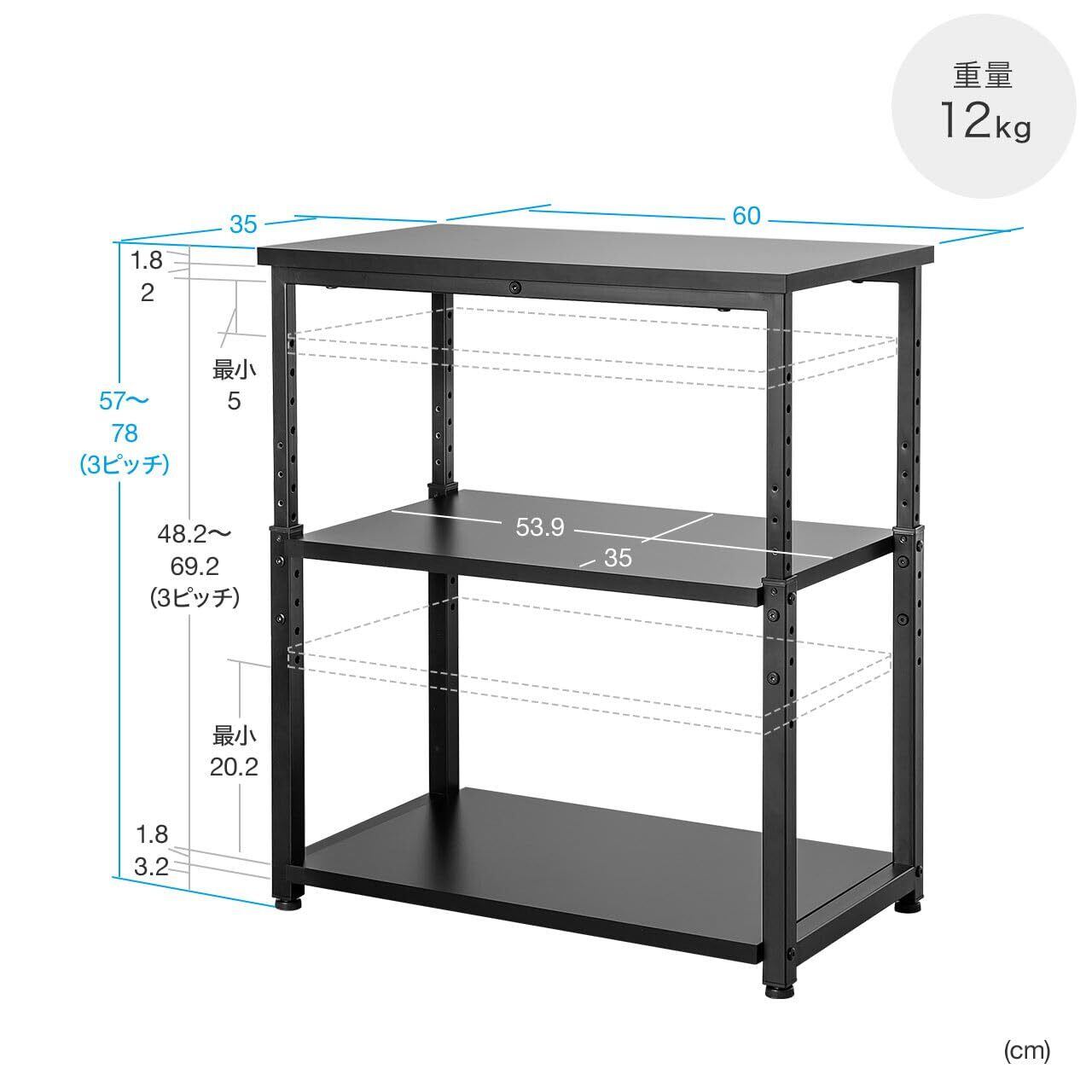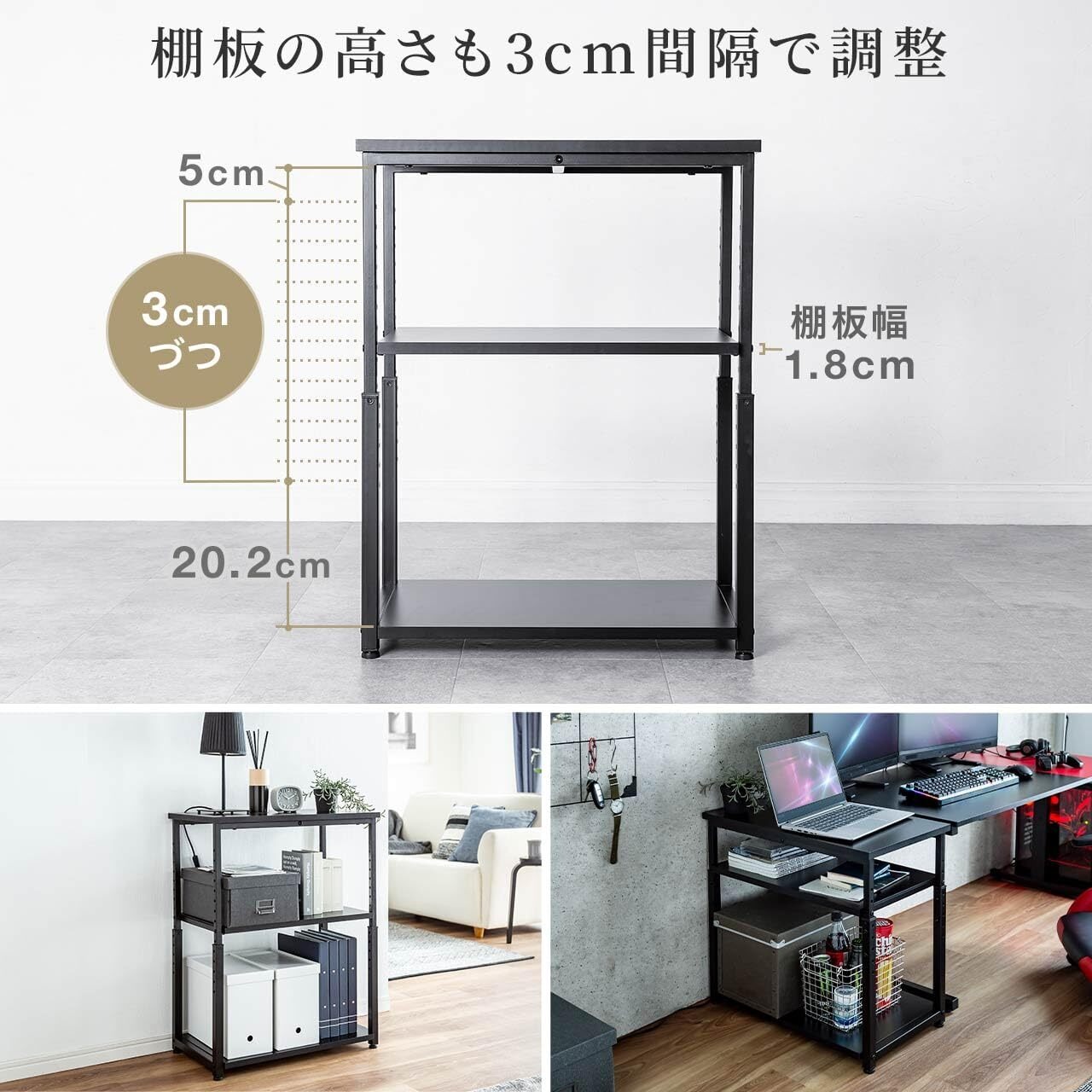 サンワダイレクト デスクサイドラック 高さ8段階 57-78cm 幅60cm×奥行35cm 総耐荷重35kg オープンシェルフ 収納ラック 100-DESKF051BK