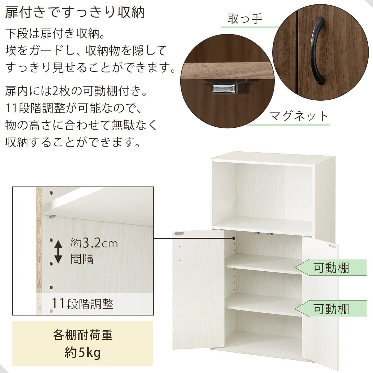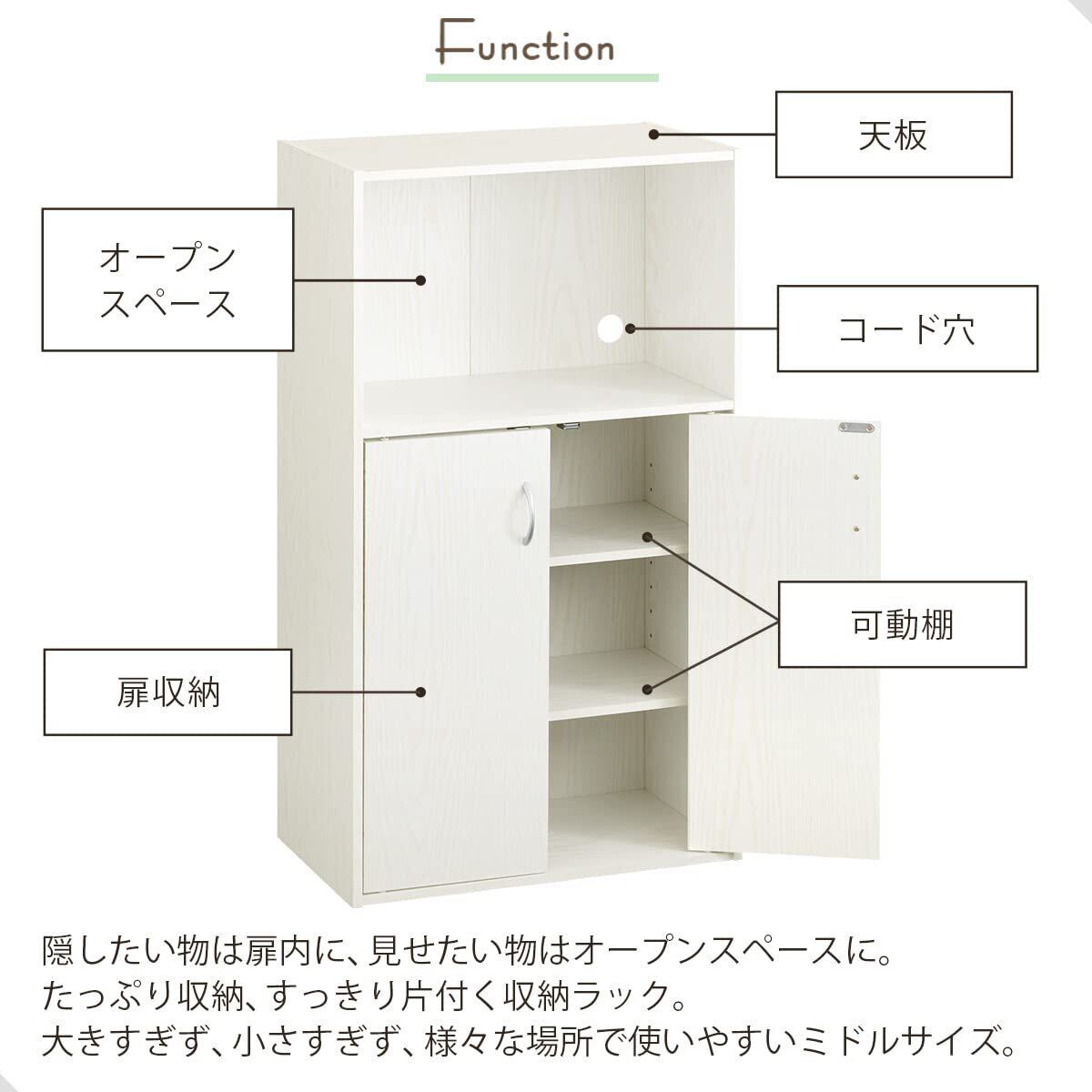 ぼん家具 棚 ラック 扉付き オープンラック オープンシェルフ 隠す収納 スリム コード穴 ホワイト