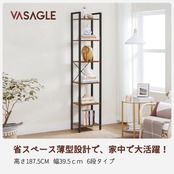 VASAGLE オープンラック 幅39.5 本棚 棚 ラック6段 収納ラック オープンシェルフ スリム 収納棚 整理棚 すき間収納 シェルフ 薄型 花台 北欧 おしゃれ 木製 六段 39.5x30x187.5CM LLS101B01