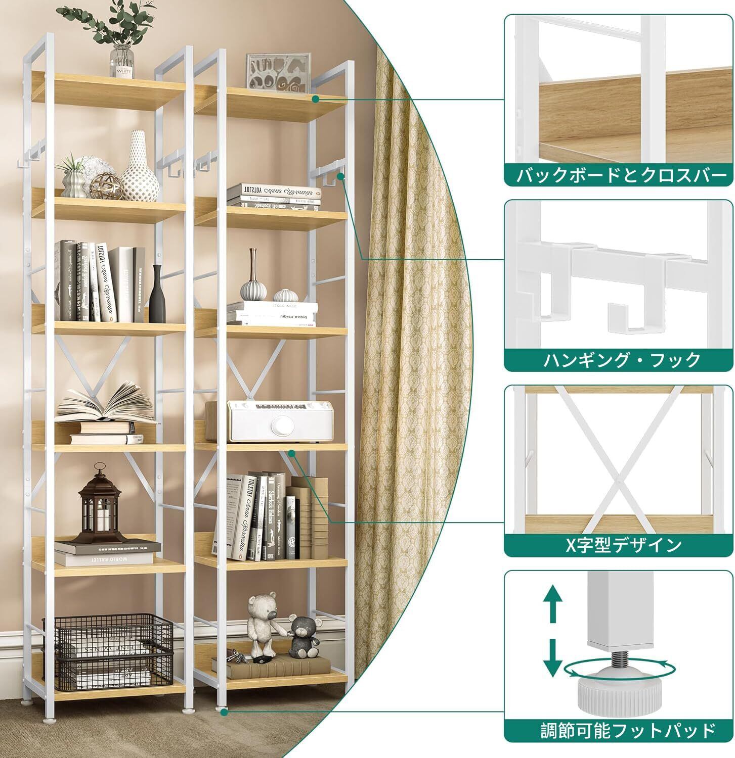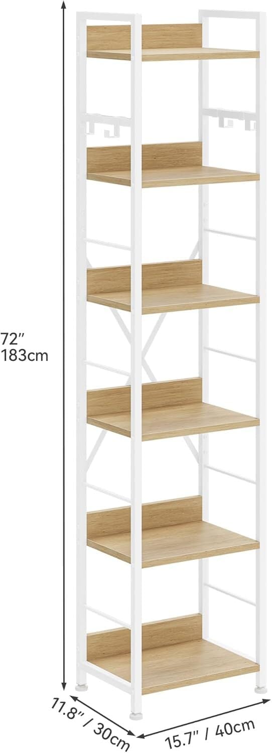 CJMM オープンシェルフ ラック 6段 幅40奥行30高さ183 書斎/寝室/バスルーム/小コーナー多用途小棚大容量 4つの可動フックを組み合わせます6階建ての本棚です…