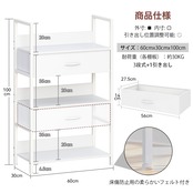 【組み立て簡単】女性一人でも30分ですぐ組み立てられるスリムで見栄えもいい商品です。工具は不要です。商品サイズ:幅40cmと60cmの2サイズから選択可能、奥行きは30㎝、高さは100㎝(3段場合)136㎝(4段場合)172.5㎝(5段場合)。「注意:左右のフレームを組み立てる際、四角い穴は内側にしてください。」