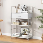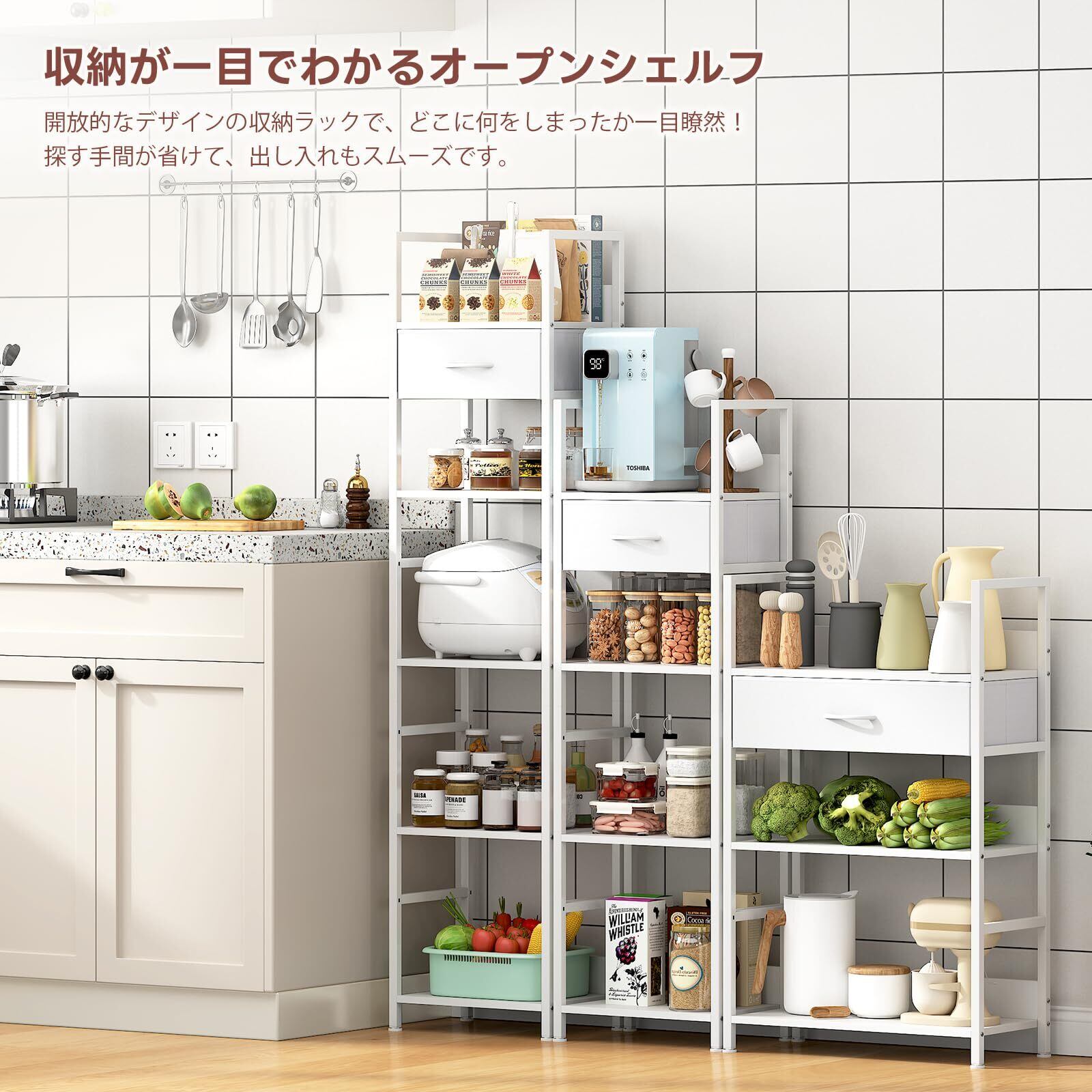 LunarLight オープンシェルフラック 幅60奥行30高さ100cm 3段ラック 収納棚 引き出し付き 引き出し位置調節可能 本棚 整理棚 L字型 アジャスト付き 収納ラック 省スペース スリム おしゃれ 組立簡単 工具不要 耐震転倒防止 (真っ白, 3段 幅60)