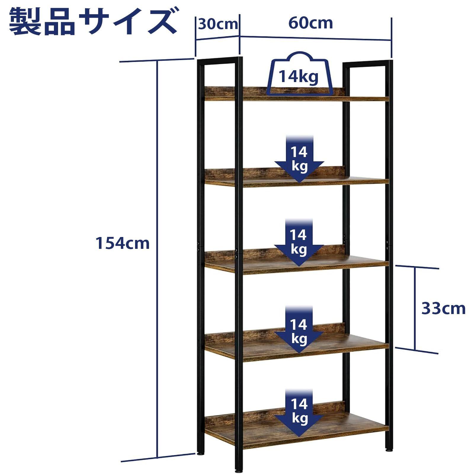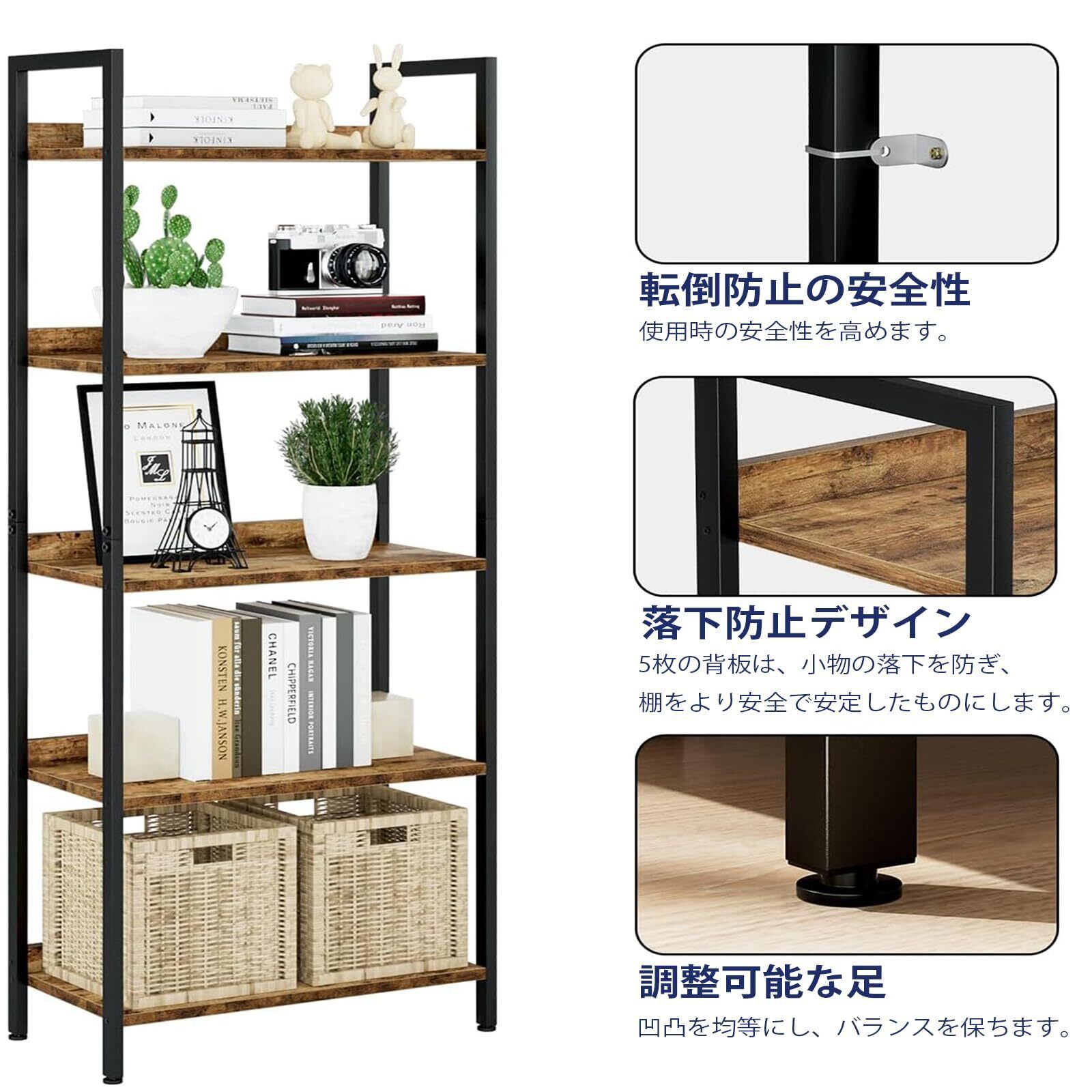 HASONA ラック 棚 オープンシェルフ 5段 シェルフ 本棚 収納ラック オープンラック おしゃれ 防水 幅60×奥行30×高さ154cm 小物落下防止 北欧 頑丈 木目調 組立簡単 復古色