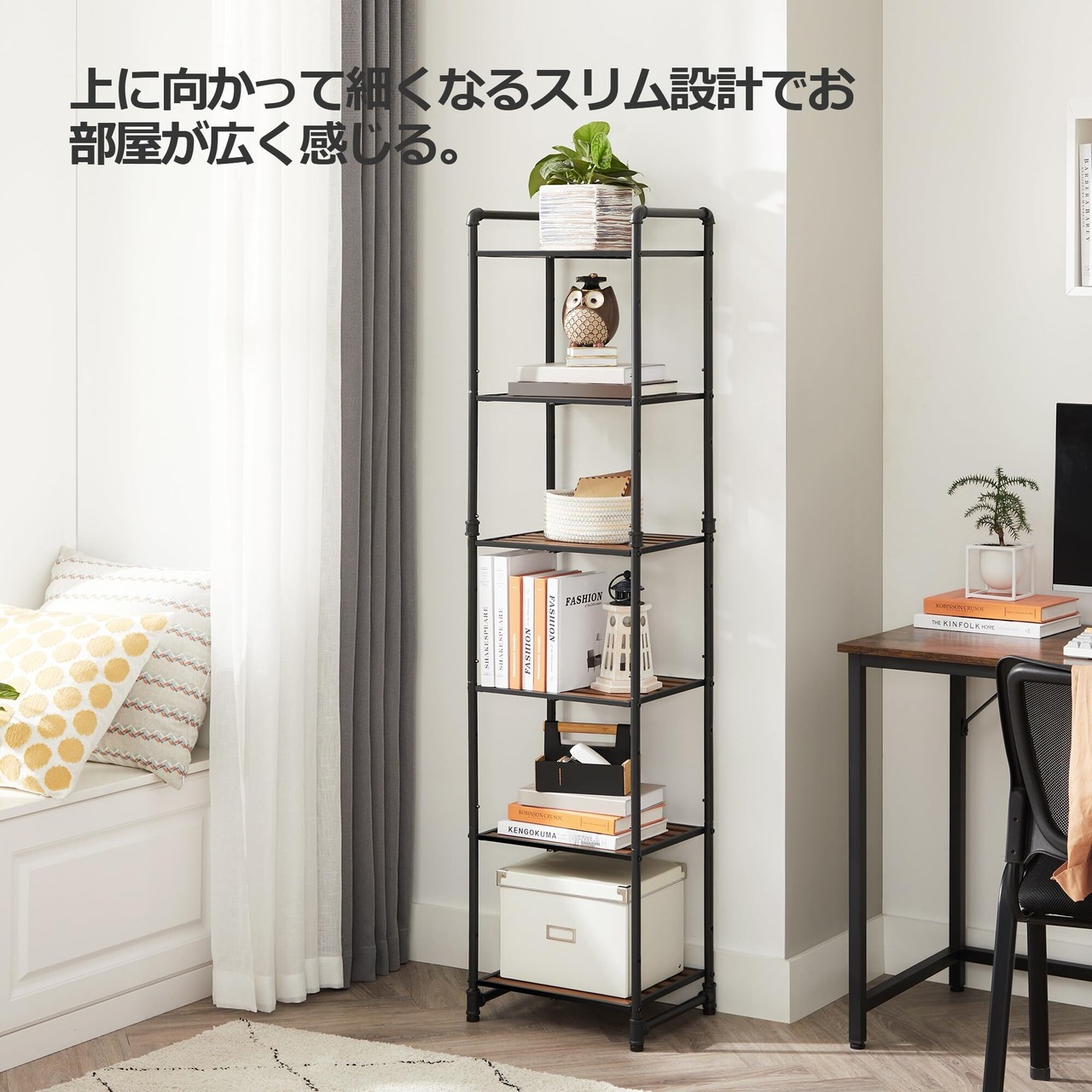 VASAGLE オープンラックスリム 6段スチールラック オープンシェルフ ラック 収納ラック すき間収納 本棚 花台 幅40CM BSC020B01