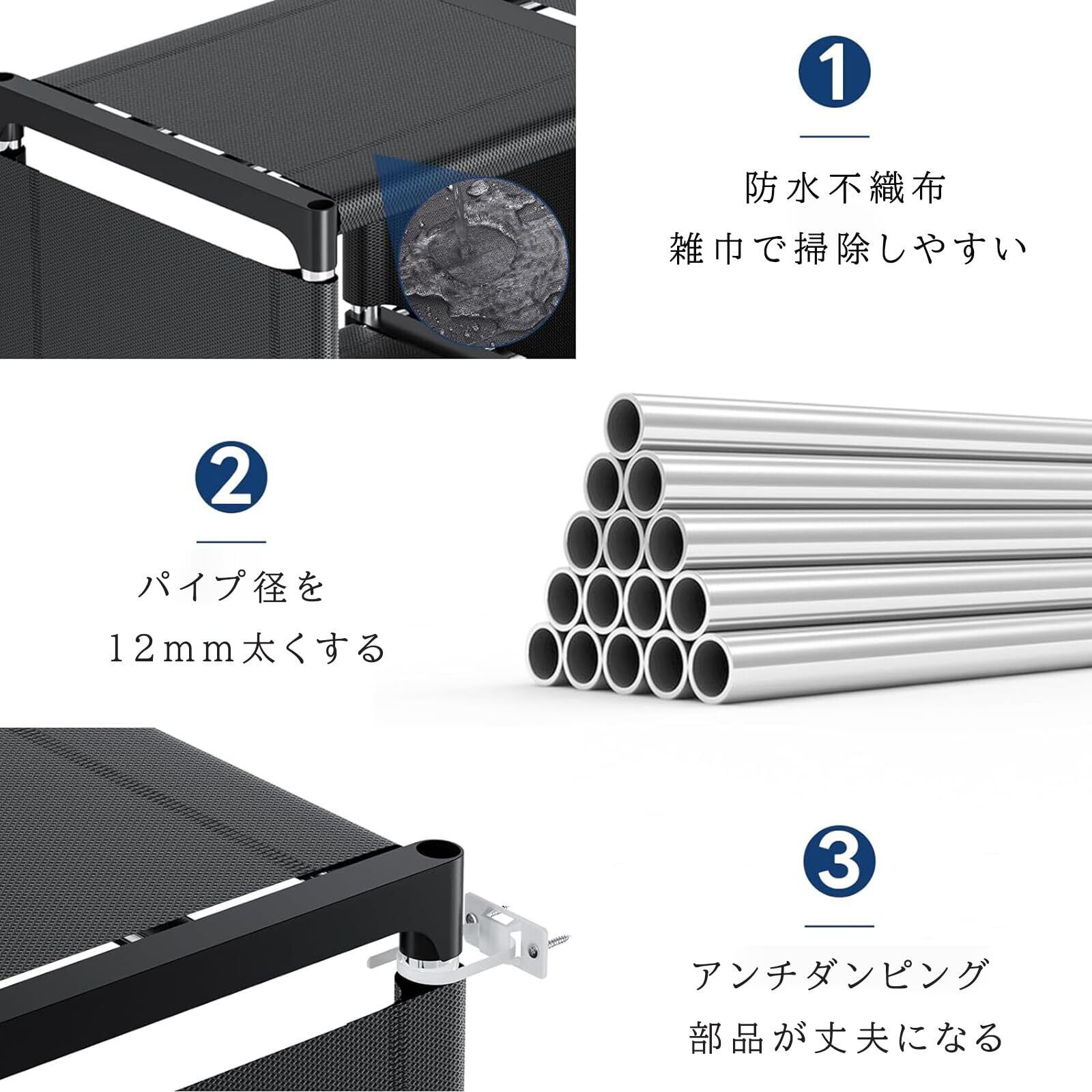 【優れた材料&丈夫で耐用】:棚 収納は、金属管、ABSプラスチック化合物、不織布などの様々な材料を使用しています。耐衝撃性が非常に強い、割れや破裂されることはなく、使用寿命を大幅に向上します。収納 棚の素材の組み合わせは防水性と清潔性を高め、全体的な美しさを保ちます。継手は良質なプラスチック制で、安定性が高くて、更に環境にやさしいです。