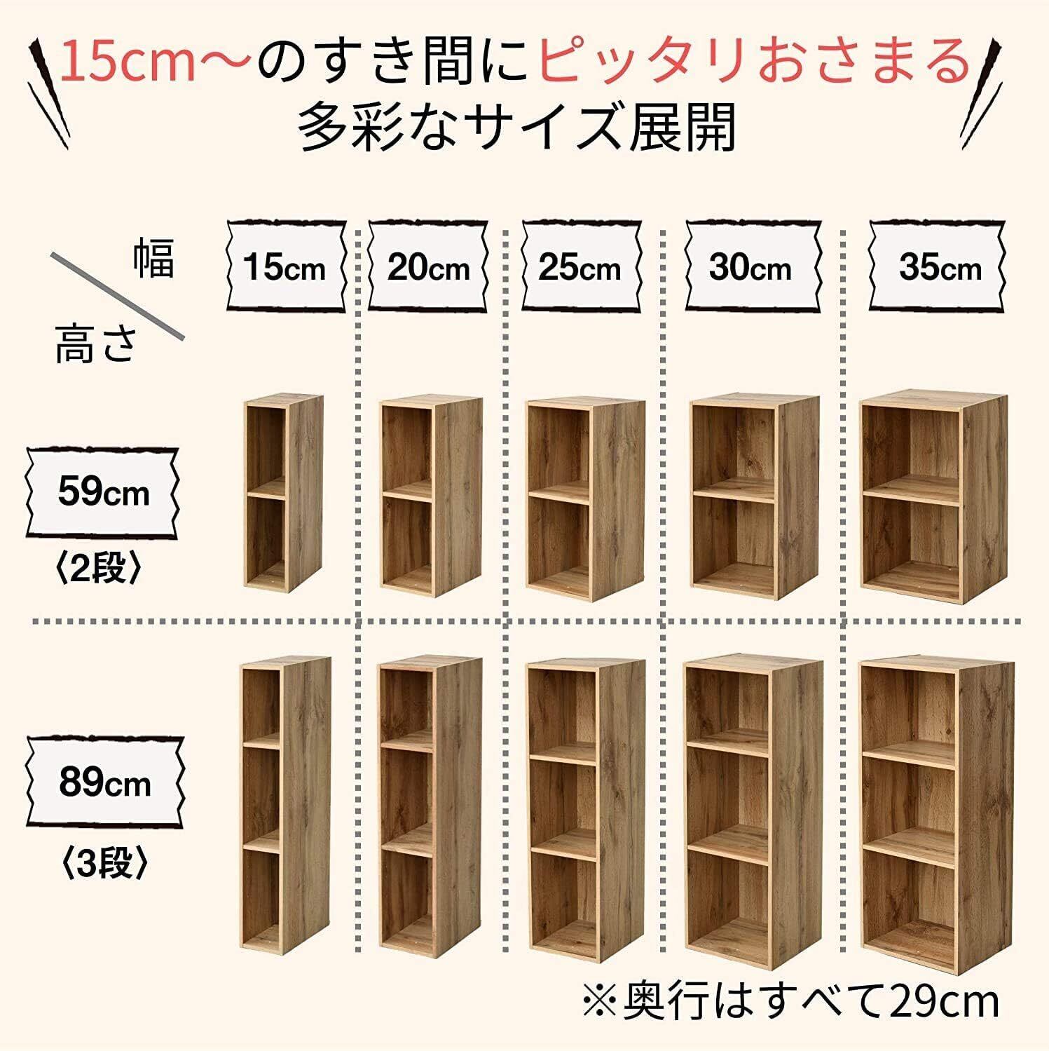 ●本体サイズ : 幅35×奥行29×高さ89cm●棚板内寸 : 幅32.5×奥行27.5cm 高さ調節可能(3.2cmピッチ、19段階)●耐荷重 : 天板、棚板各10kg●材質 : プリント紙化粧パーティクルボード●お客様組立