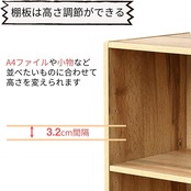 【棚板の高さ調節可能】棚板は3.2cmピッチ、19段階で高さを変えられます。A4ファイル対応です。