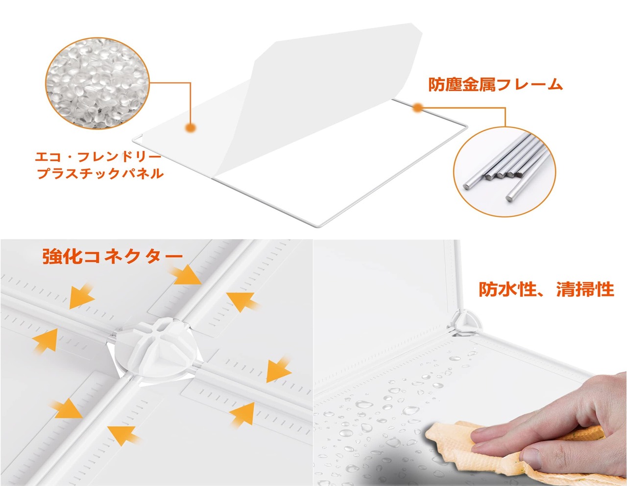 メンテナンスが容易:本棚の製造工程では、PP樹脂パネルの表面を特殊な技術で処理し、汚れが溜まりにくい滑らかな表面にしています。 汚れた場合は、水拭きで簡単に落とすことができます。