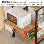 【【多機能収納ラック】レールで棚板をスライドできます。両側でワイヤーでSフックが付きで、袋やナイフなどの収納に最適。レンジ台やプリント台の設置に便利。上の棚板で調味料入れや調理器具などもまとめて収納できます。