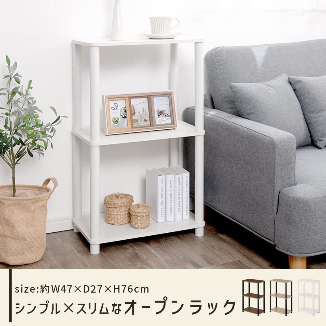 ぼん家具 オープンラック 3段 木製 シェルフ 幅47×奥行27×高さ76cm ディスプレイ リビング収納 工具不要 簡単組み立て ホワイト