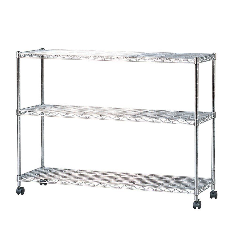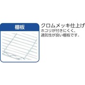 ●材質/棚板・ポール:スチール(クロームメッキ)、固定部品:ABS樹脂、キャスター:ナイロン樹脂