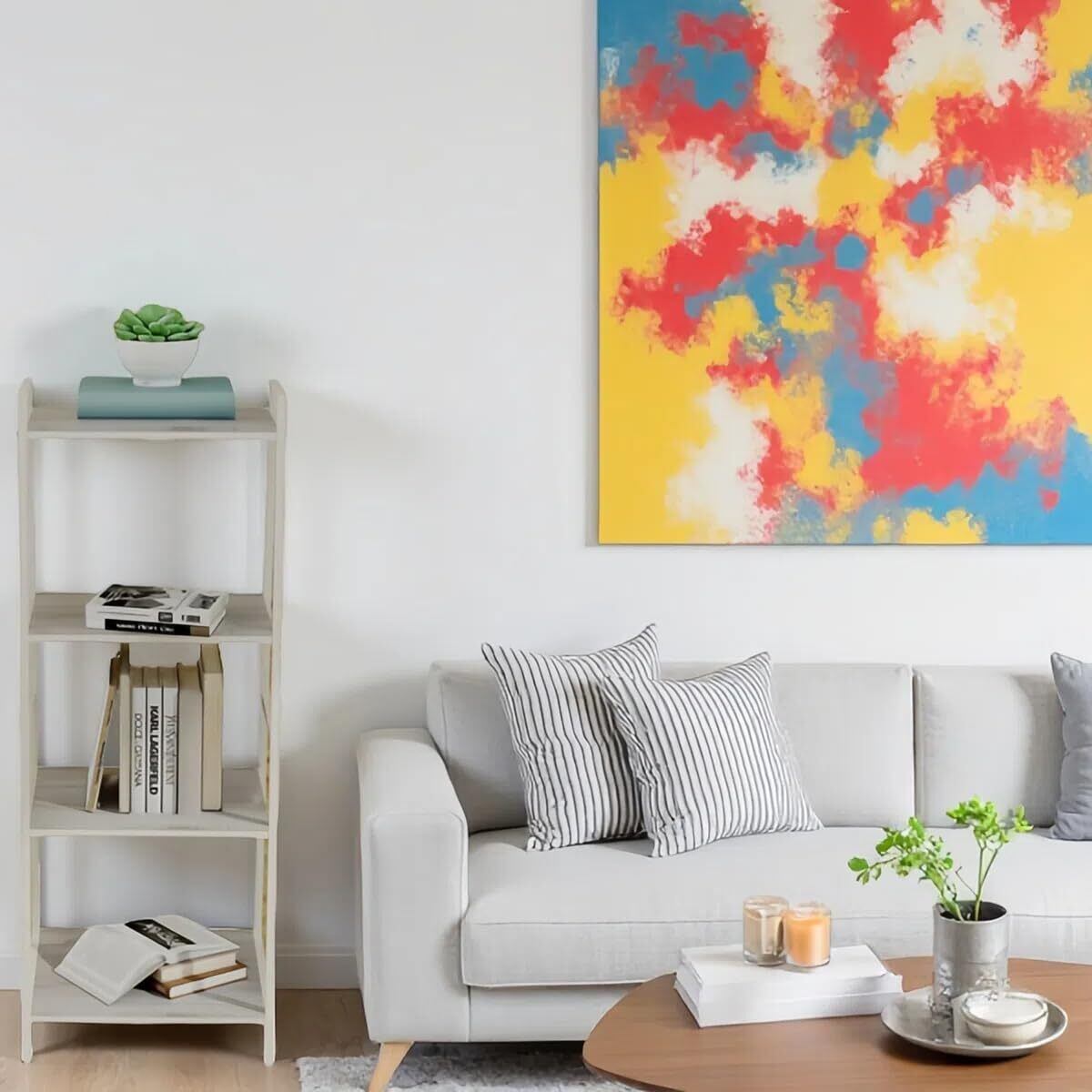 【コーナーシェルフのサイズ仕様】:収納ラックのサイズはH115CM×W40CMです。はしご型の4段収納ラックなので、各段の奥行は上から下まで異なります19CM→23CM→27CM→31CM)。