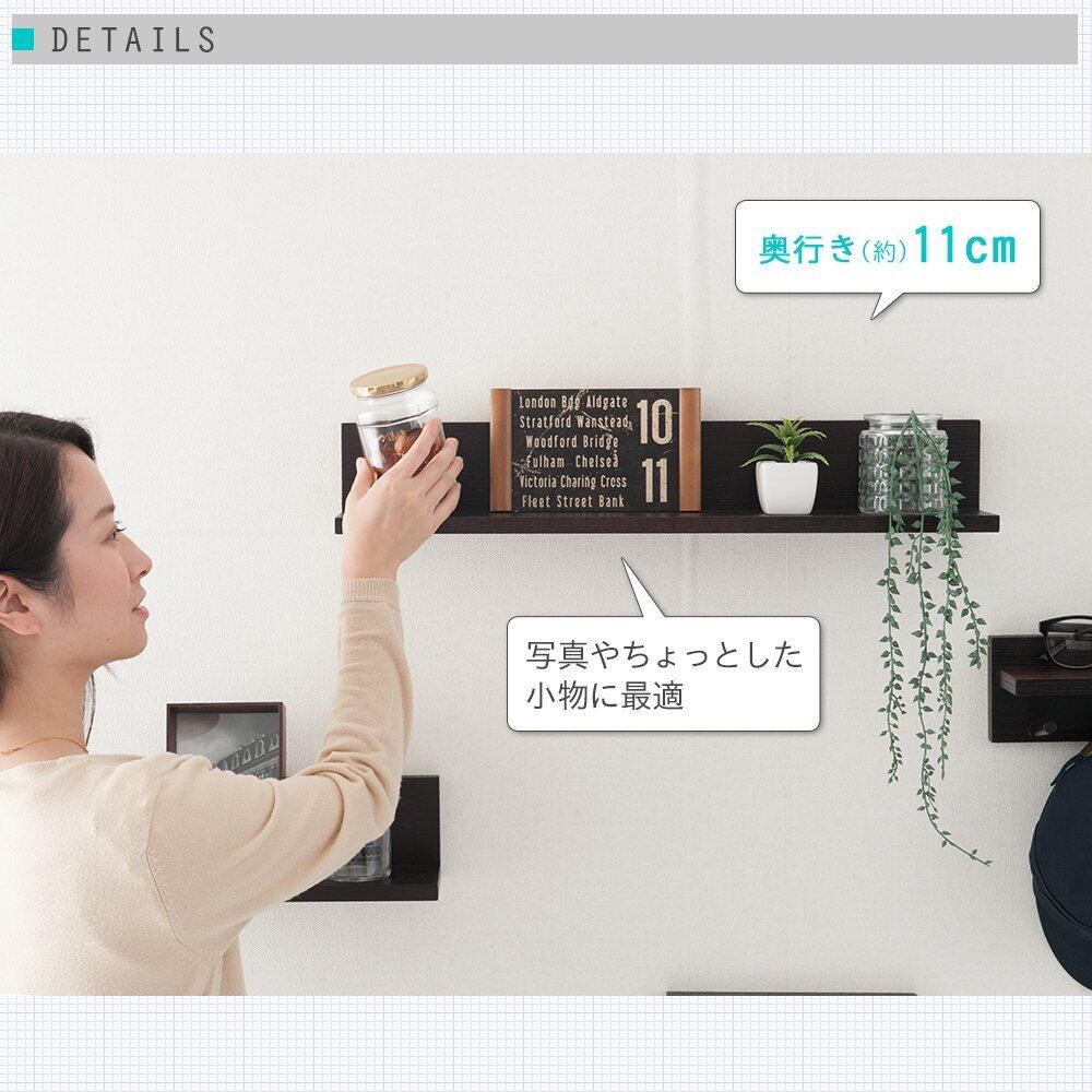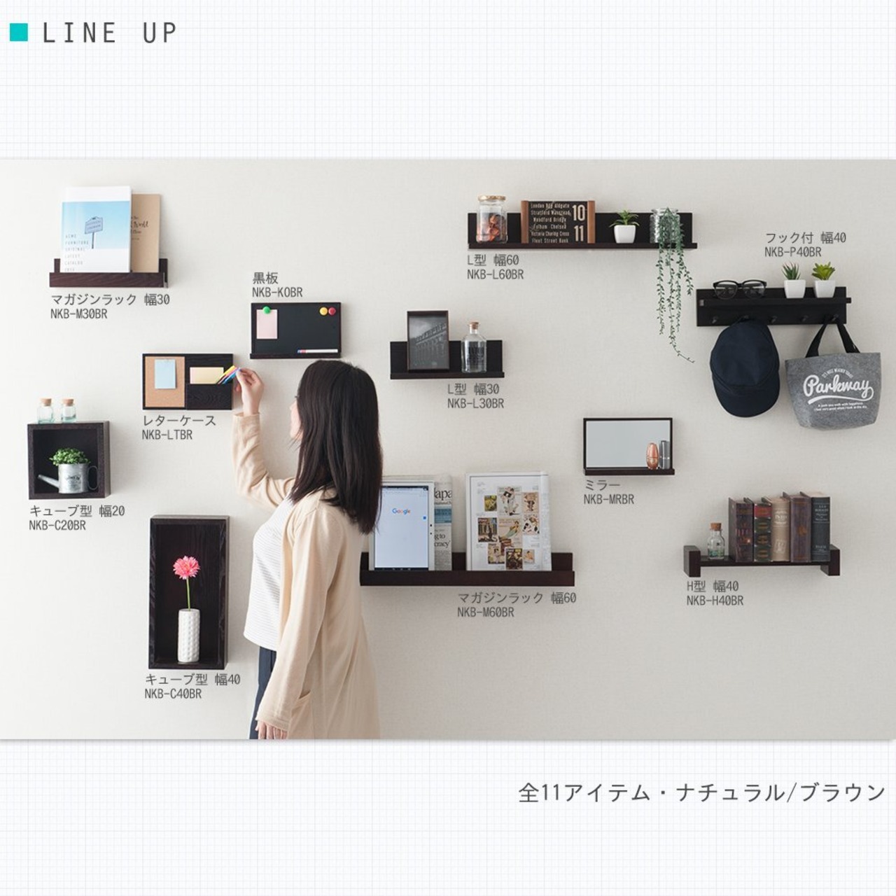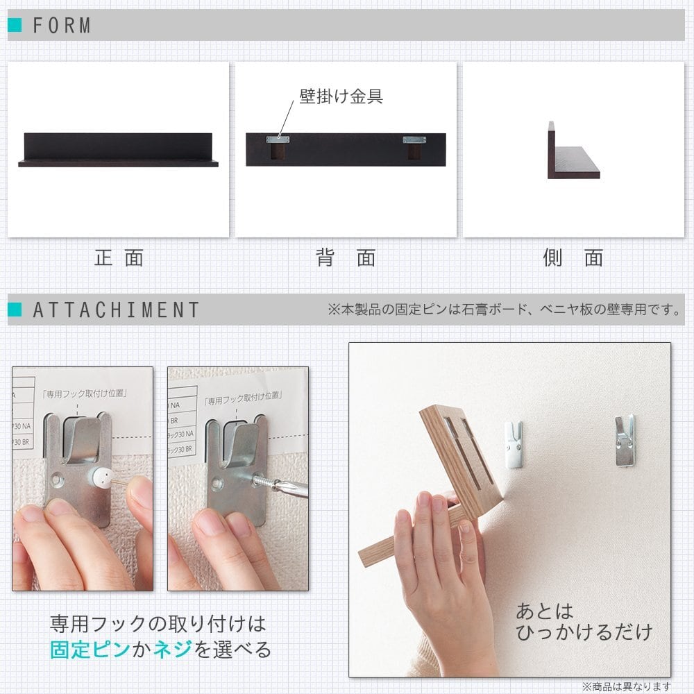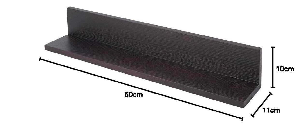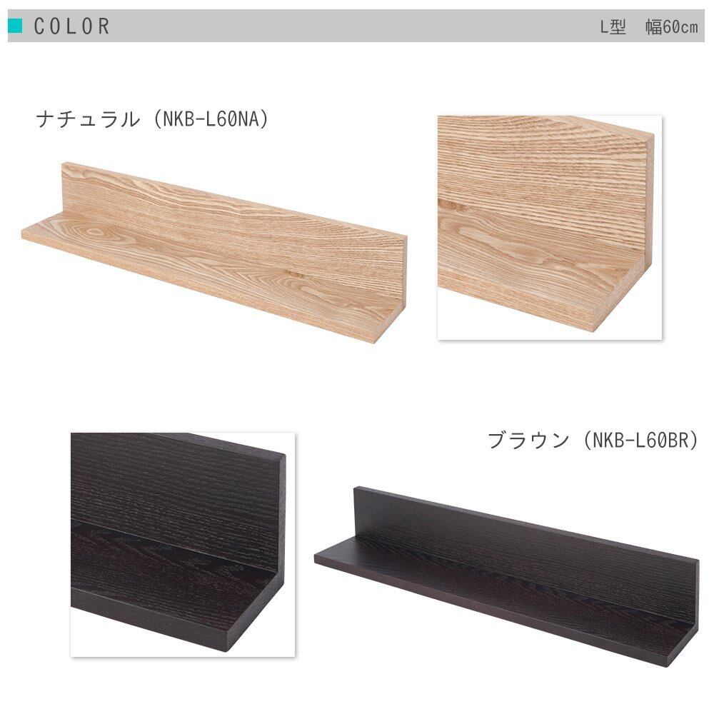 ドウシシャ ウォールシェルフ 棚 L字型 幅60 ピンで取り付けるから賃貸OK 壁を傷つけない 天然木製 壁掛け 飾り棚 耐荷重3kg おしゃれ 石膏ボード 簡単取付 本棚 洗面所 子供部屋 調味料 幅60×奥行き11×高さ10cm NKB-L60BR