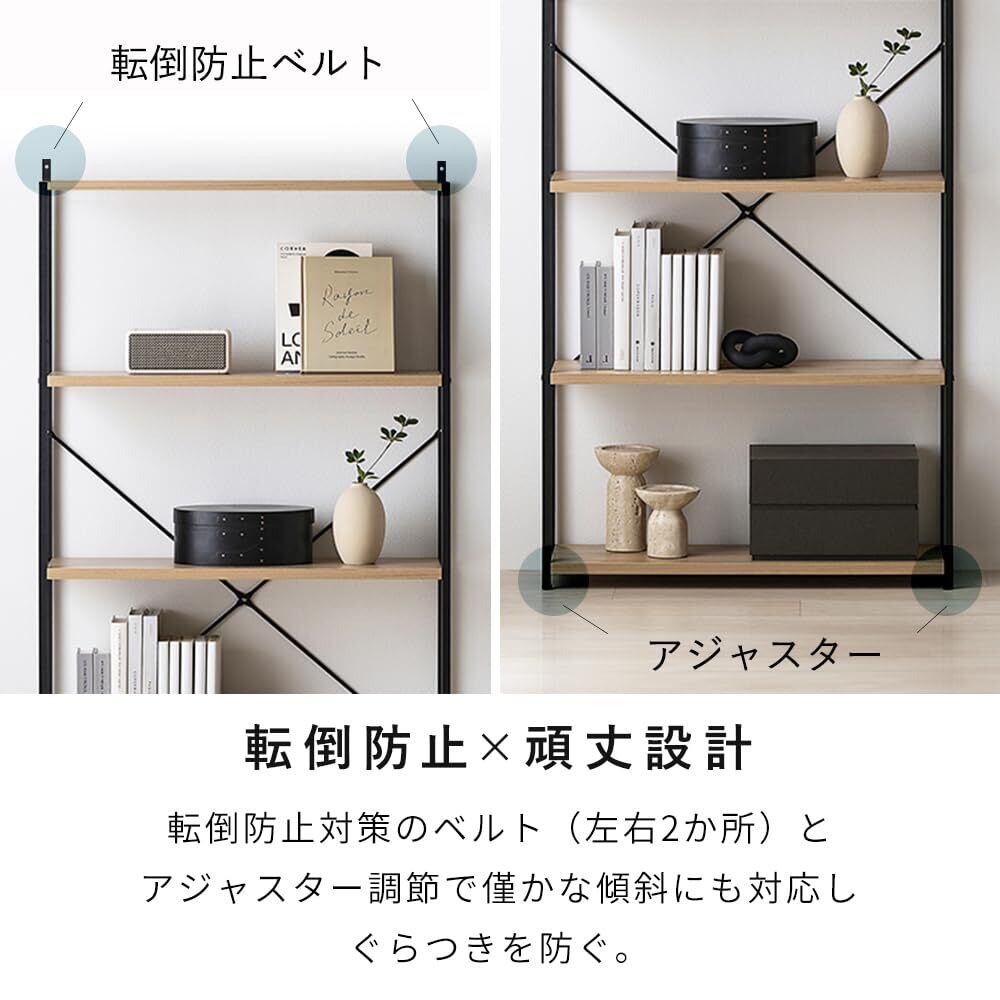 2段目と4段目の棚は高さが変えられるので、収納の幅が広がります。
