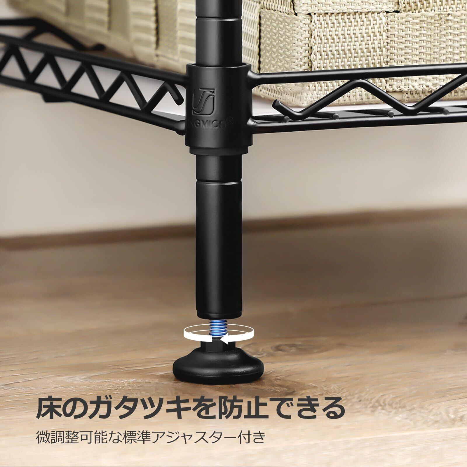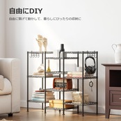 【棚の位置は自由に変える】ポールの溝は2.5cm間隔についているため、棚位置を細かく調節できます。収納物に合わせて棚位置を変えられ、収納スペースを有効活用!