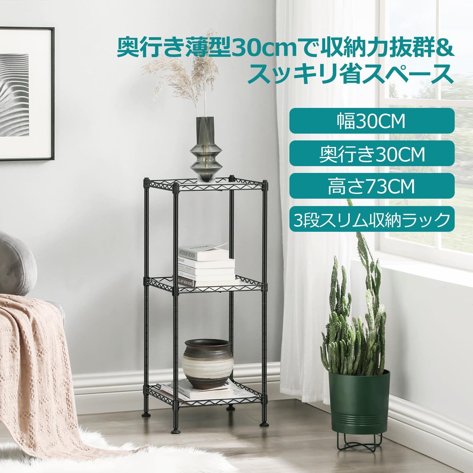 SONGMICS ラック 3段 スリム スチールラック メタルラックキッチンラック オープンラック 幅30CM 奥行30cm おしゃれ スチールシェルフ シェルフ省スペース 隙間収納LGR103B01V1