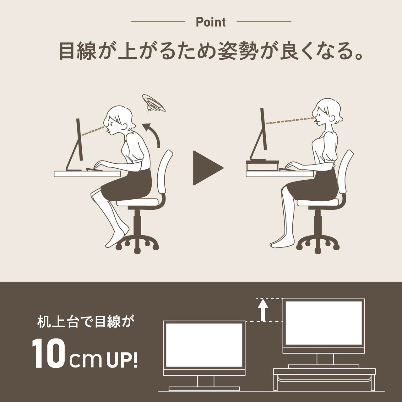 机上台に棚が付いているので、書類や冊子、モニター接続したノートPCなどを置いて使用でき、デスクスペースを有効活用できます。