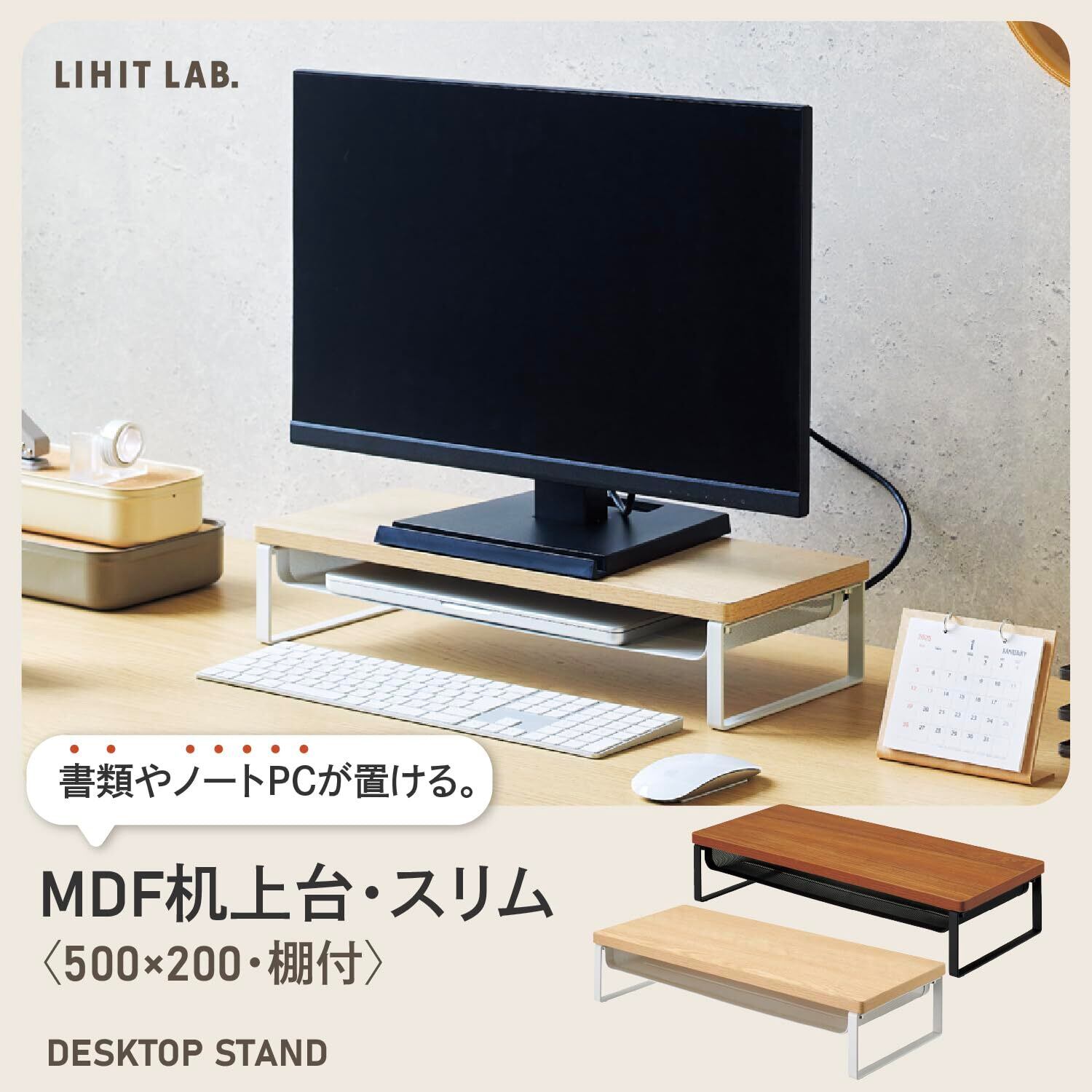 リヒトラブ パソコン台 モニター台 木目調 MDF 机上台 スリム 棚付 ブラウン 幅50×奥行20×高さ10cm 耐荷重15kg A8012-9