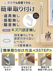 【製品の特長】《事前準備の必要なし》ピンフックを使用する場合は、ドライバーなどの工具もいりません。《壁はほぼ無傷》棚を設置した際のキズはほとんど残りません、ほぼ無傷です。賃貸物件にも◎《落下を徹底防止》落下防止ガードが付属しているのは当店のみ!《フレームの左右差》棚を丁度真正面から見たときにバランス良く、美しく見えます。