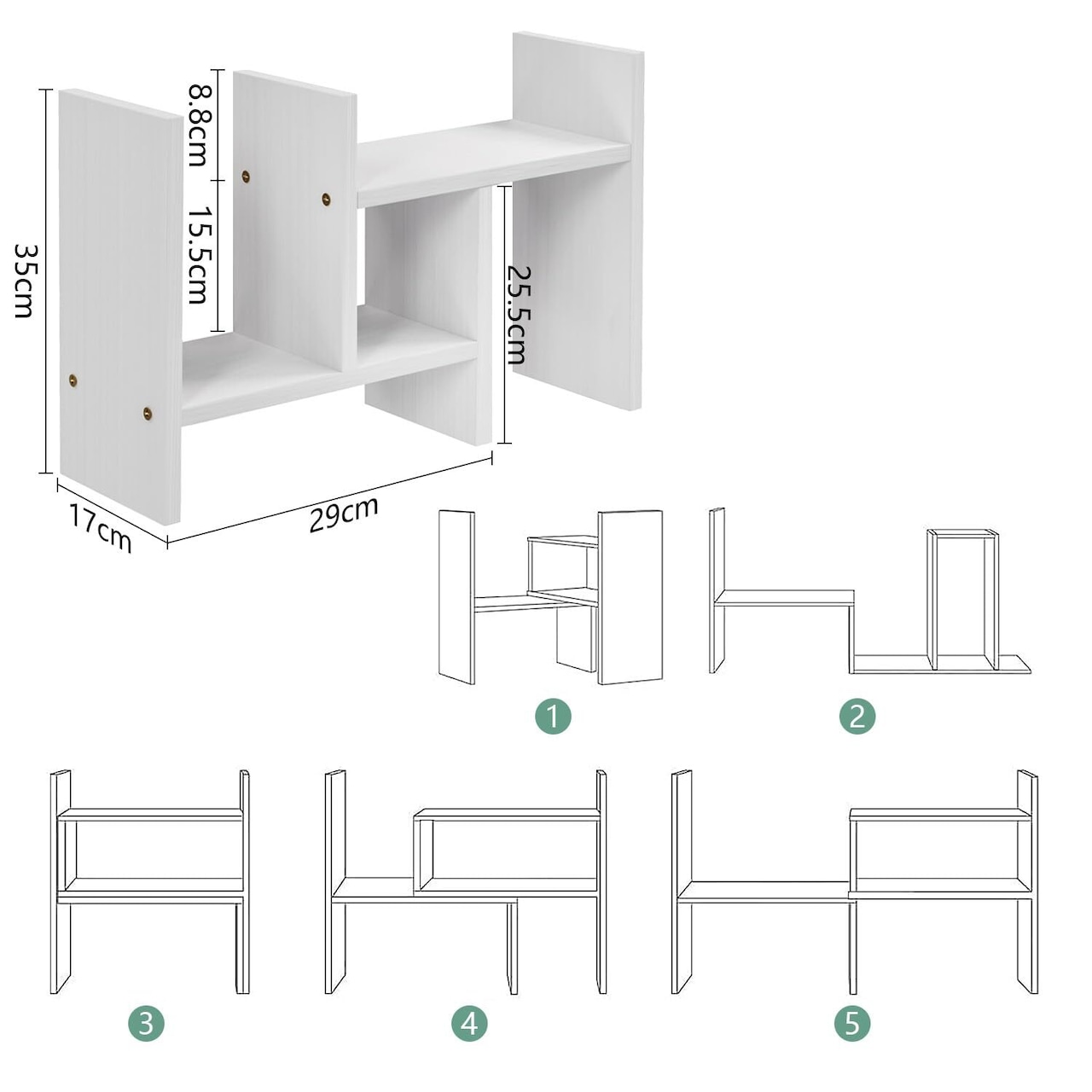 NIIKOUEデスク上置き棚 収納ラック 多種組み立て方式 卓上 伸縮型 3種の組み合わせ 木製 スッキリ 整理整頓 ブックスタンド 本立て (ホワイト)