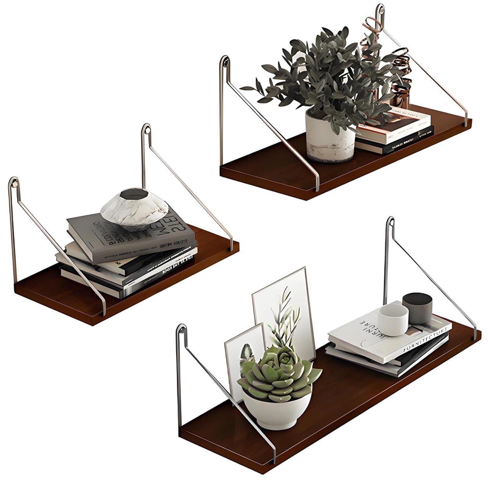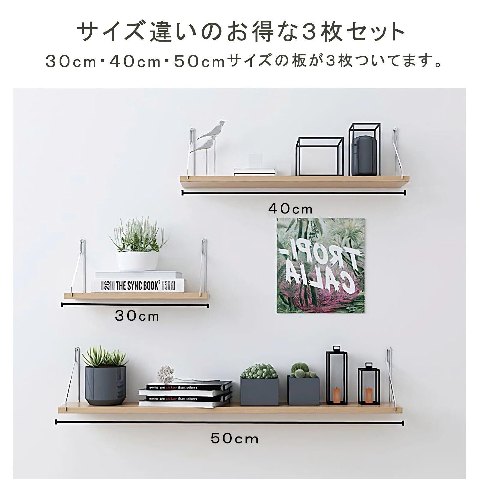 DFBL ウォールシェルフ 壁を傷つけない 壁 棚 ウォールシェルフ 賃貸 3枚セット 30cm/40cm/50cm 壁 棚 穴あけない 壁掛け棚 収納 (ブラウン)