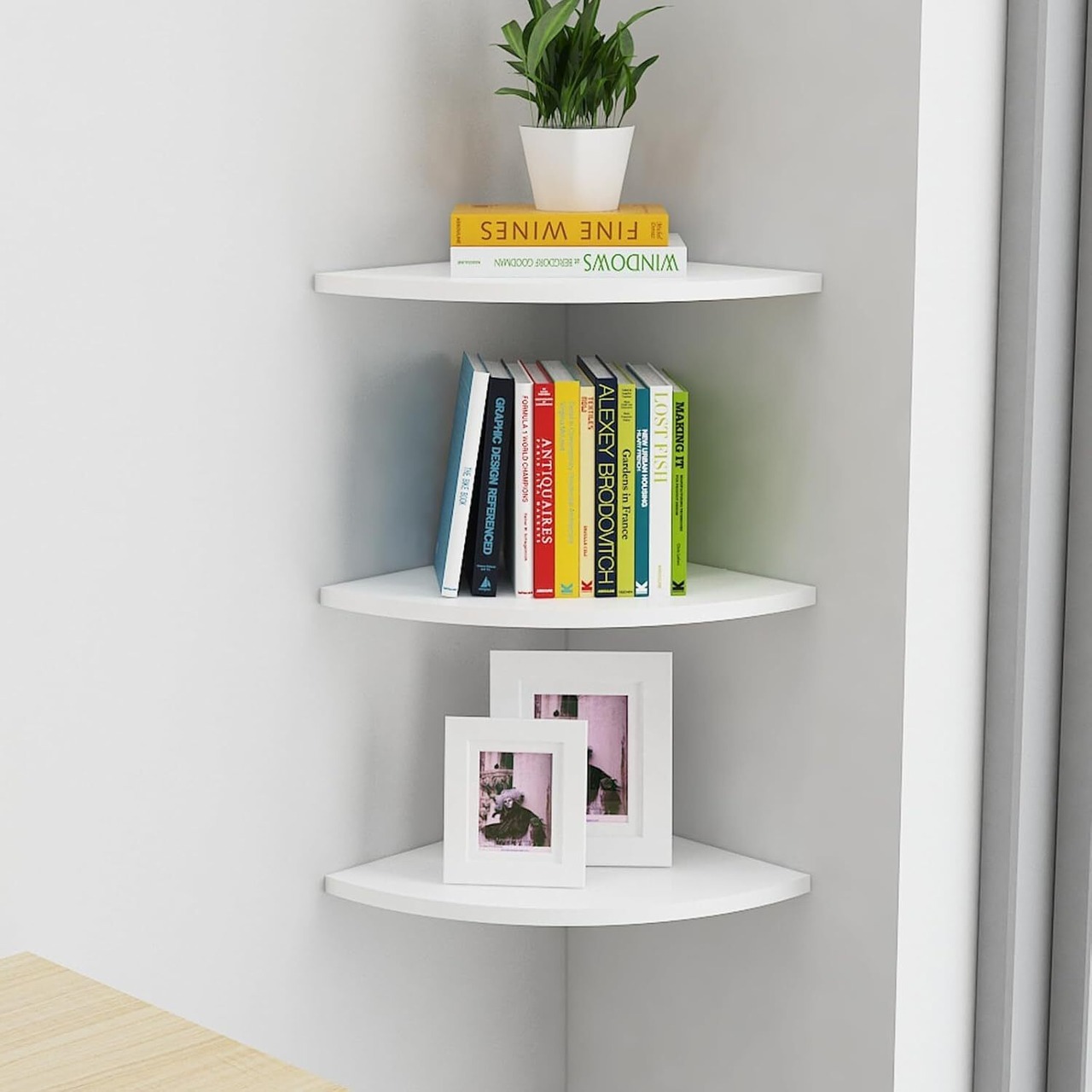 コーナーシェルフ コーナーラック ウォールラック 壁掛け棚 角棚 壁棚 壁面収納 ウォールシェルフ コーナーに付ける棚 壁掛け 収納 三角 木製壁棚 コーナー用 壁掛けラック スタイリッシュで美しい 北欧 インテリア 木製 扇形シェルフ簡単組立 壁に付けられる棚 壁収納 家具収納 飾り棚 書斎 (ホワイト, 18cm-)