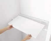 つっぱり棒に乗せるだけで棚が完成! 伸縮式なので使いたい幅に合わせて設置できます。