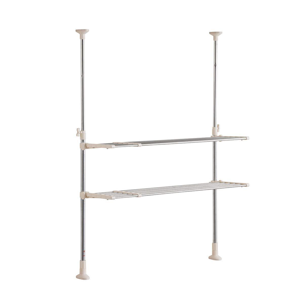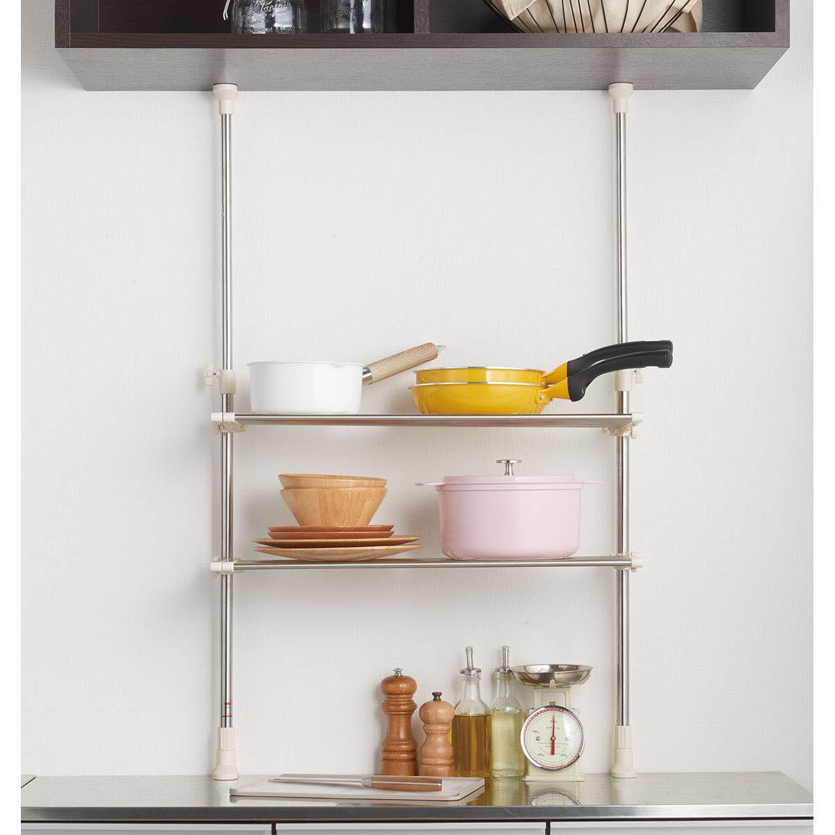 ベストコ ステンレス つっぱりキッチンラック 2段 伸縮棚 ワームグレー NY-1002