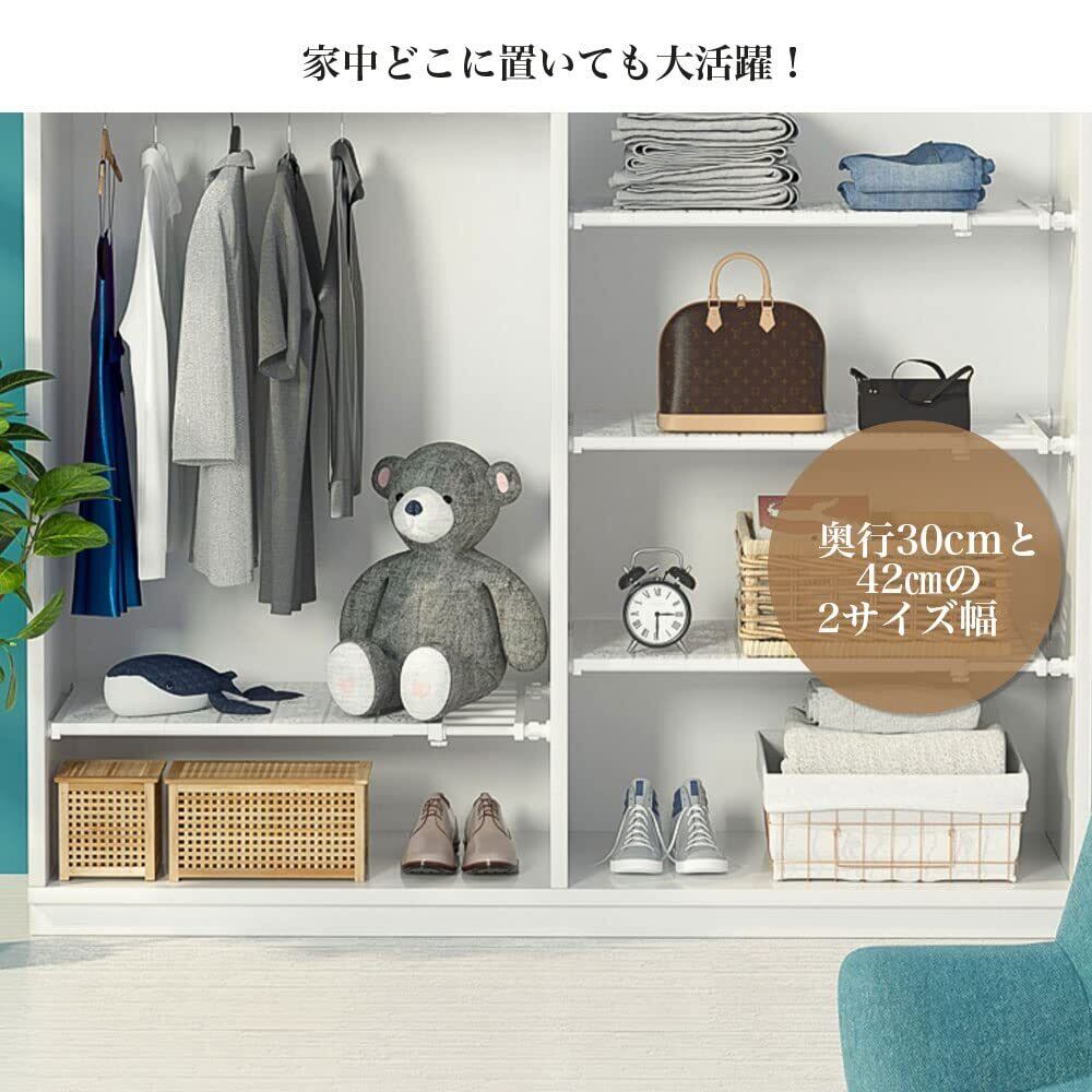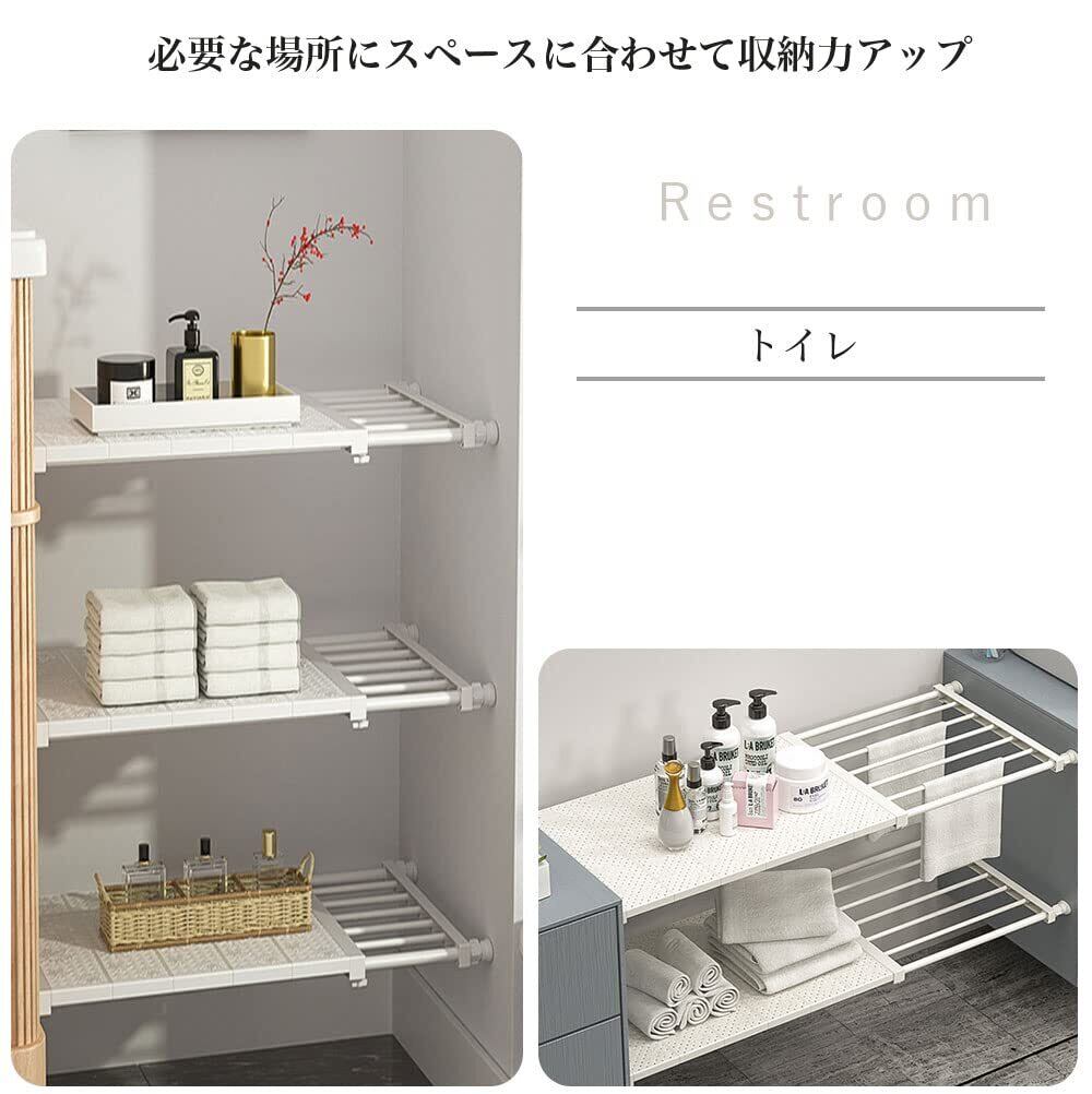 【スペースを省く】クローゼット、シューズラック、収納棚、本棚、食器棚として使えます。すき間、玄関、浴室、キッチンなど場所に設置するとすっきり片付きます。つっぱり棚ワイドなので、普通の突っ張り棚よりもっと多い物を載せます。仕切り棚板は小物を載せるのに便利です。