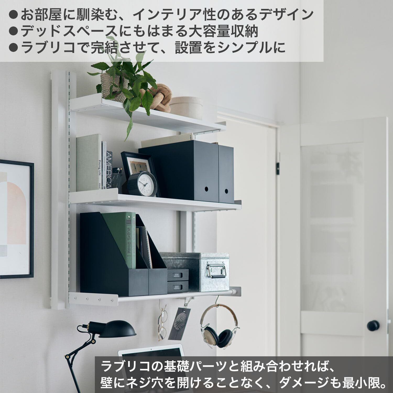 初心者でもクオリティの高いインテリア収納が作れるShelf Rail(シェルフレール) シリーズの棚受パーツです。