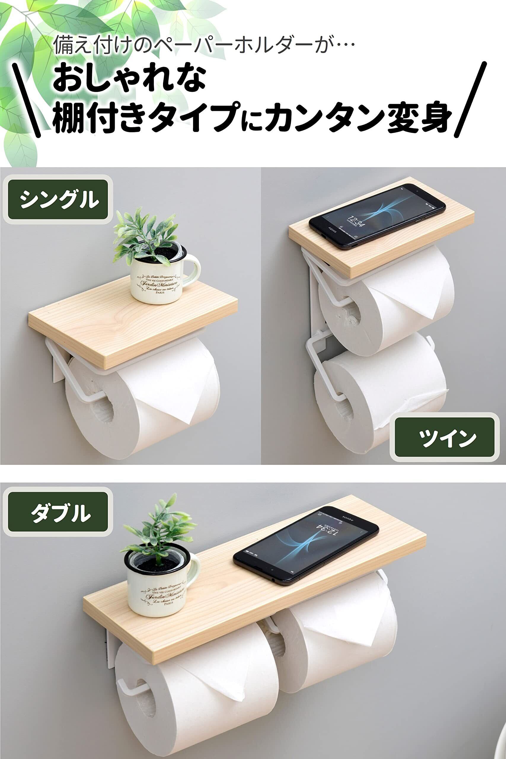 ●備え付けのペーパーホルダーを棚付きタイプに簡単チェンジ